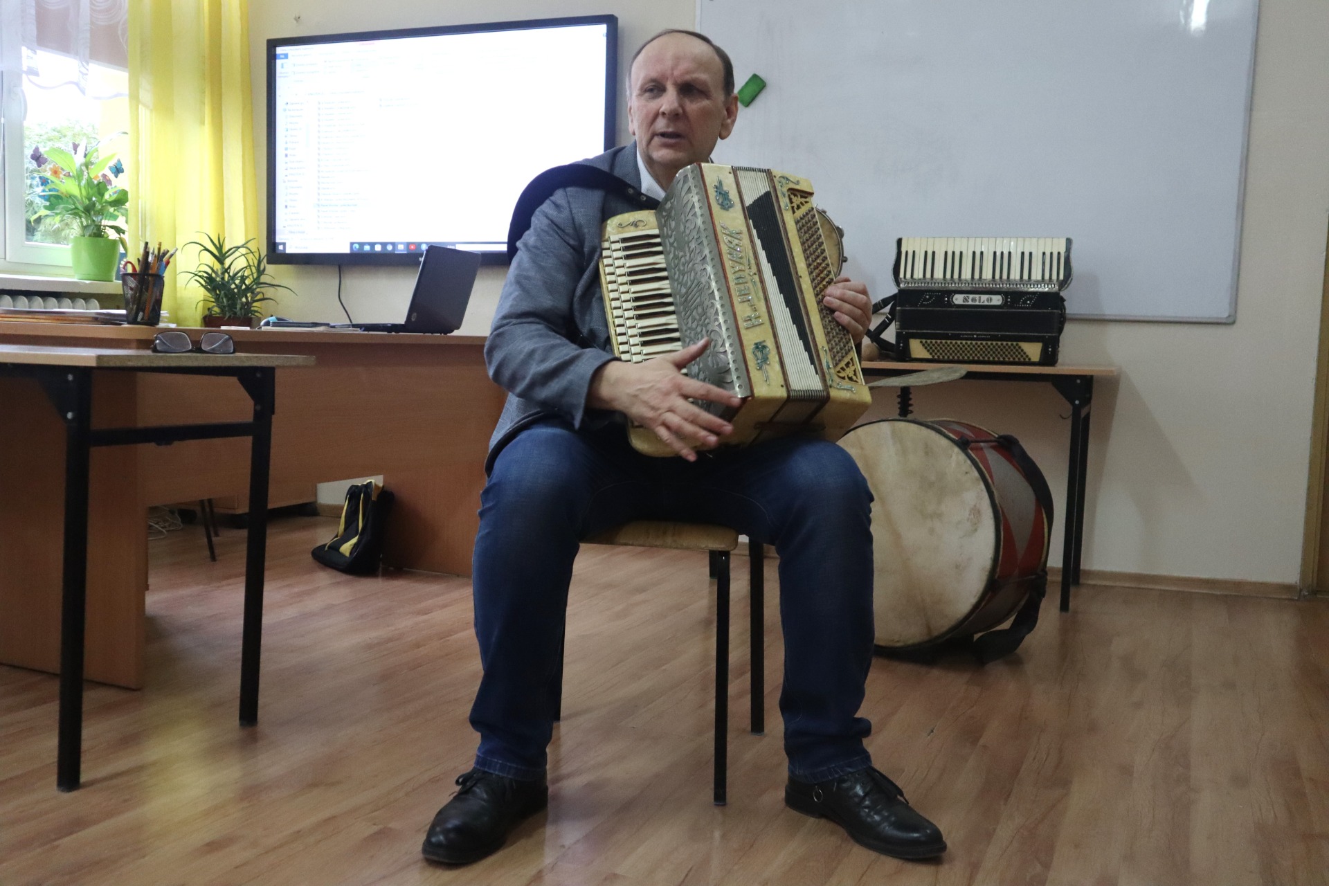 Pasja do muzyki towarzyszy Panu Adamowi od najmłodszych lat, gra, śpiewa i kolekcjonuje instrumenty związane z naszym regionem. Nam opowiedział o muzyce ludowej na przestrzeni ponad stu lat! Zaprezentował instrumenty muzyczne ze swoich bogatych zbiorów, wśród których znalazły się trąbki, klarnety czy dżaz - dawna wiejska perkusja.