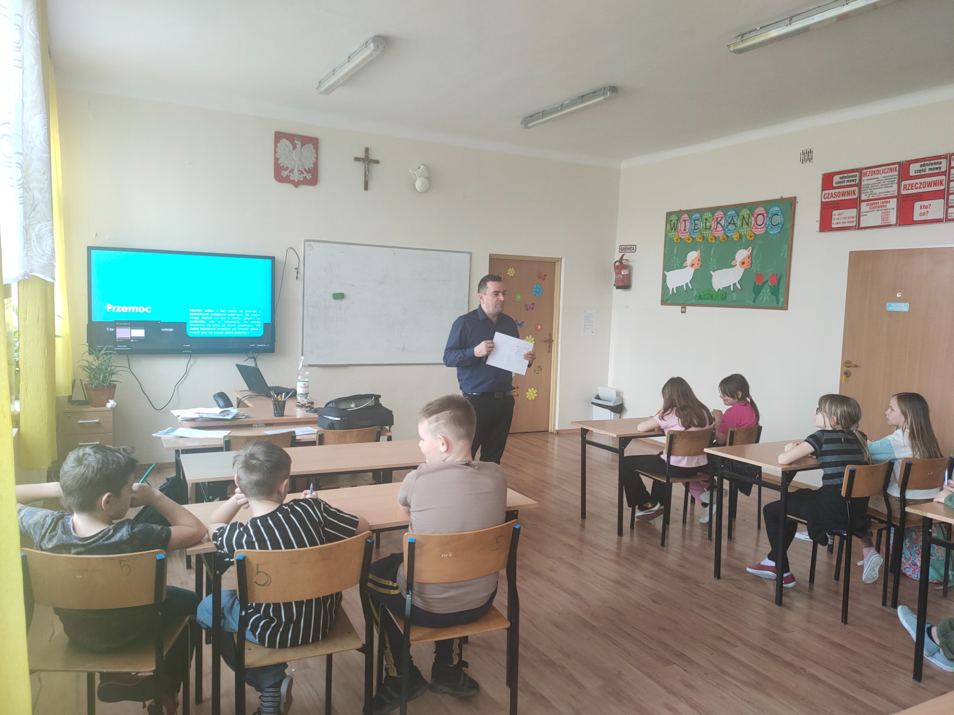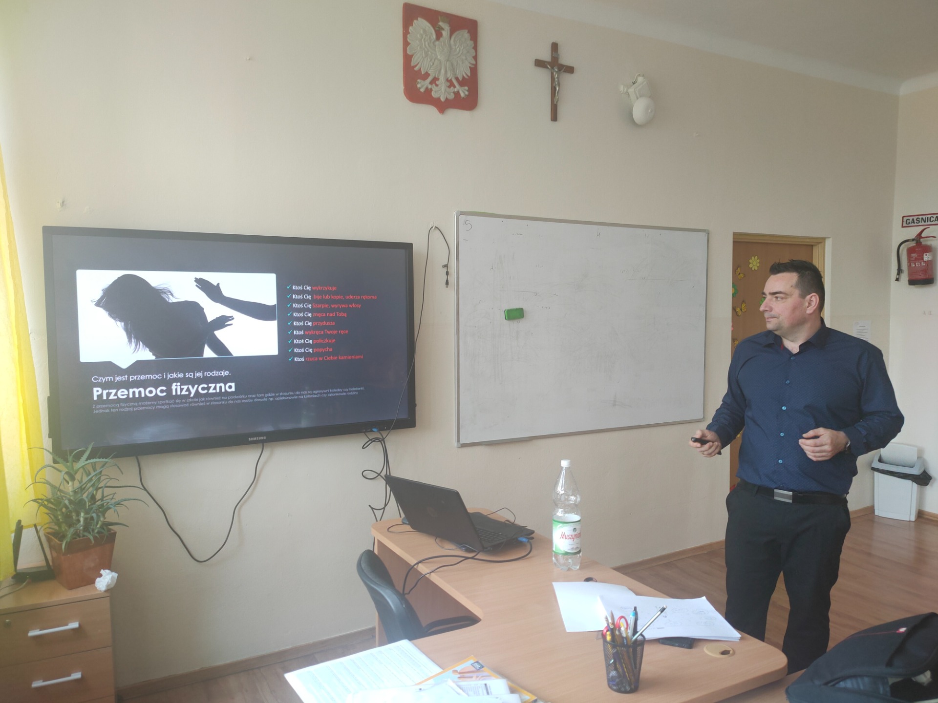 Przemoc jest zjawiskiem groźnym. Dzieci często jej ulegają, ze względu na to, że są słabe i małe. Muszą więc wiedzieć, jak się przed nią bronić i oczywiście do kogo należy się zwrócić w razie jej wystąpienia. Pan Krzysztof z „Magicznej sceny” zapoznał więc uczniów młodszych klas z rodzajami przemocy i uczulał je na to, aby nigdy nie pozostawały wobec niej obojętne.
