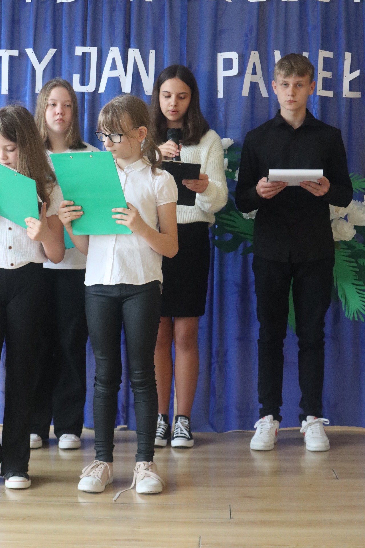 Pani Dyrektor podziękowała za przygotowanie pięknego apelu o Papieżu Janie Pawle II i pogratulowała młodym artystom.