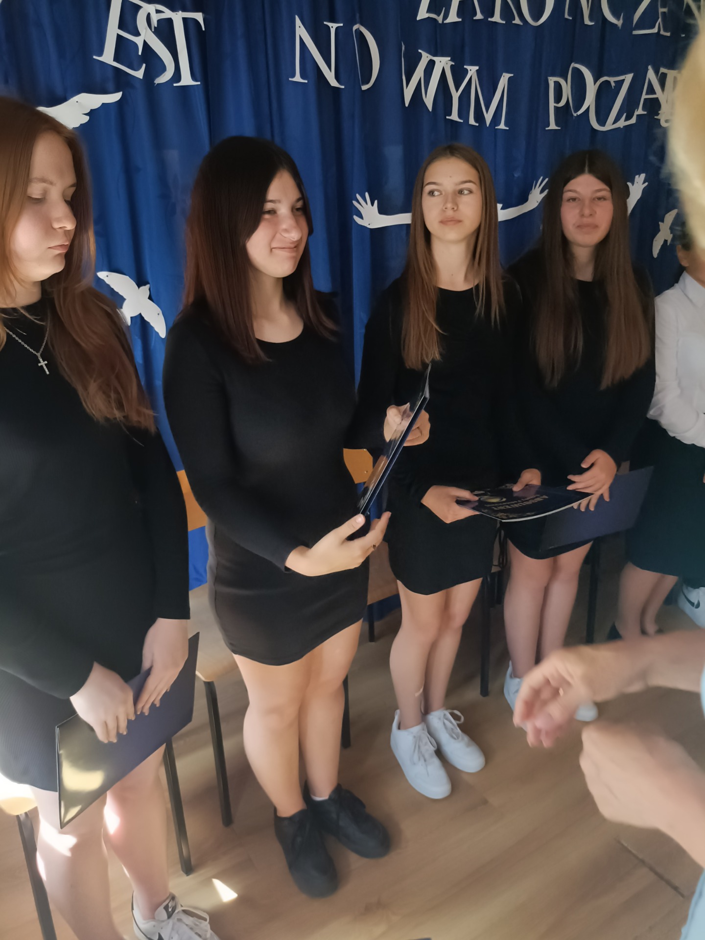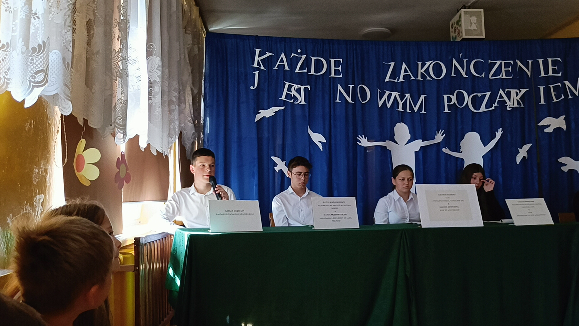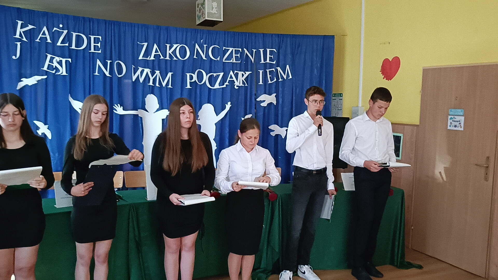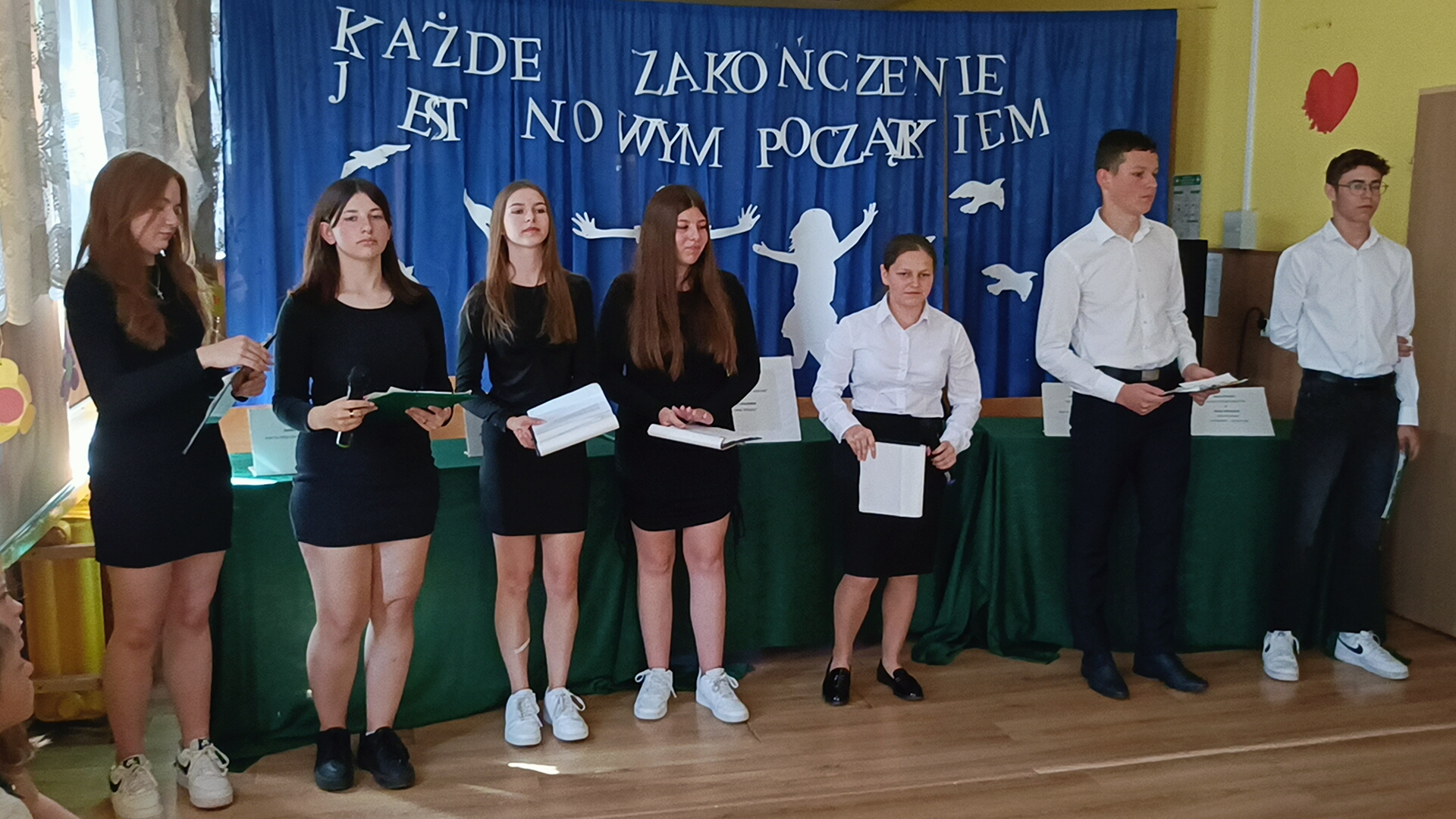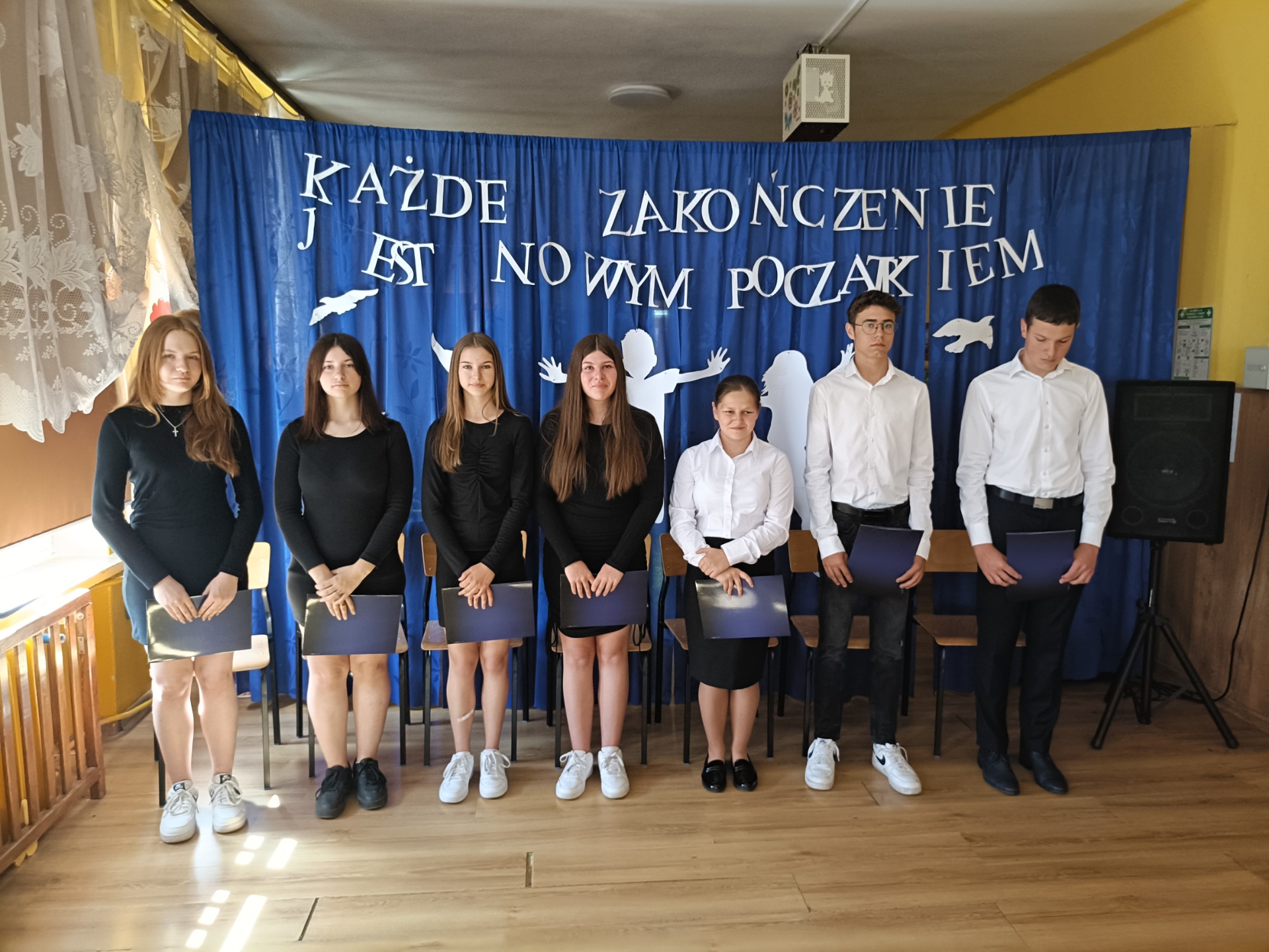 Ten rok minął bardzo szybko, jak w kalejdoskopie przesuwały się przed naszymi oczami różne szkolne uroczystości, konkursy, szkolne wycieczki, były sprawdziany wiedzy, kartkówki ale też i wiele cudownych chwil, zupełnie nie związanych z lekcjami. Dyrekcja naszej szkoły miała ambicję, by szkoła stała się drugim domem uczniów. O tym, że wszyscy sprostaliśmy temu zadaniu, mogą świadczyć łzy w oczach uczniów klasy VIII.