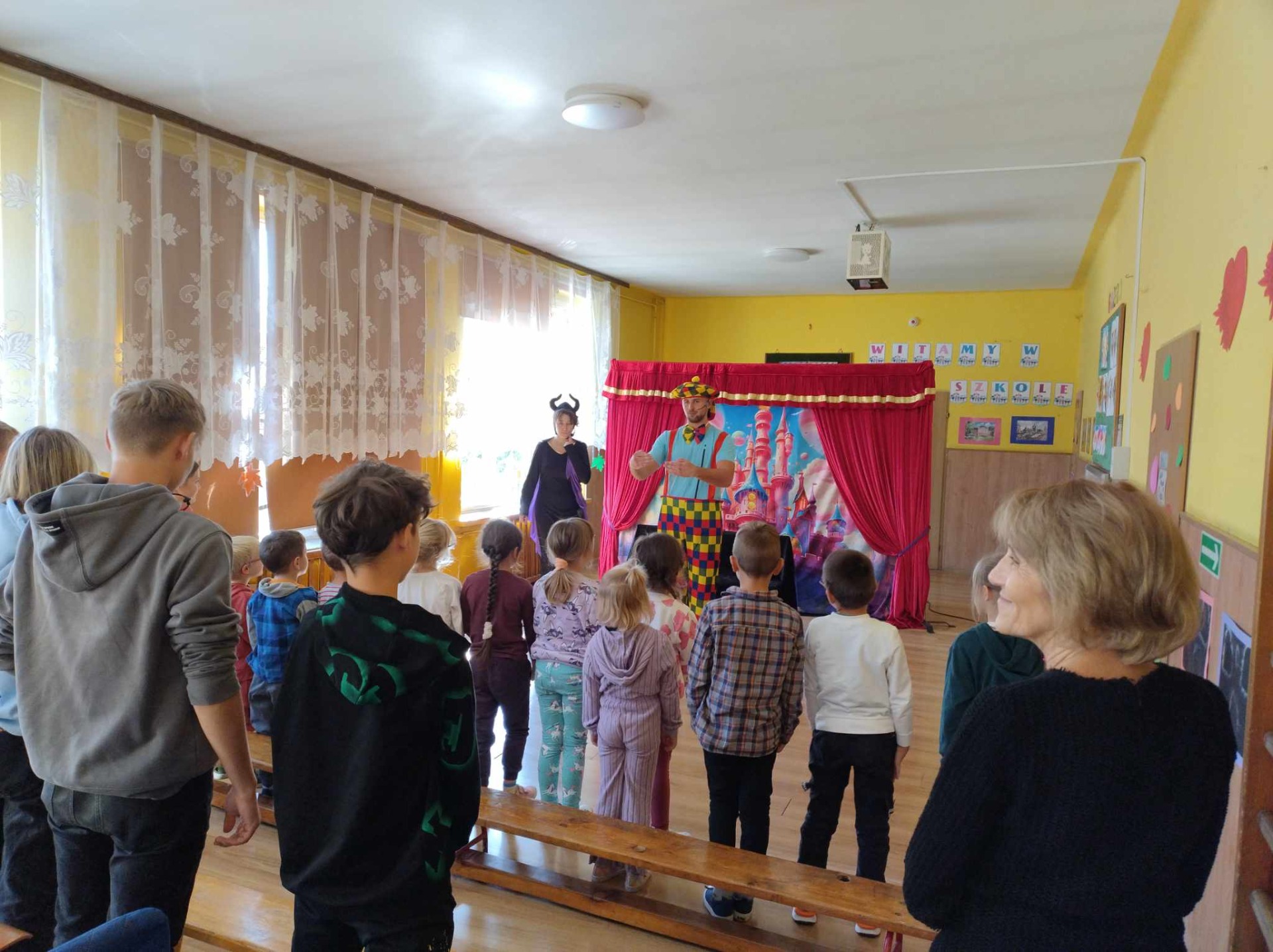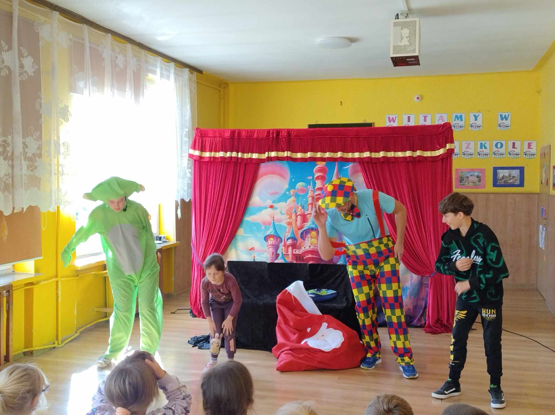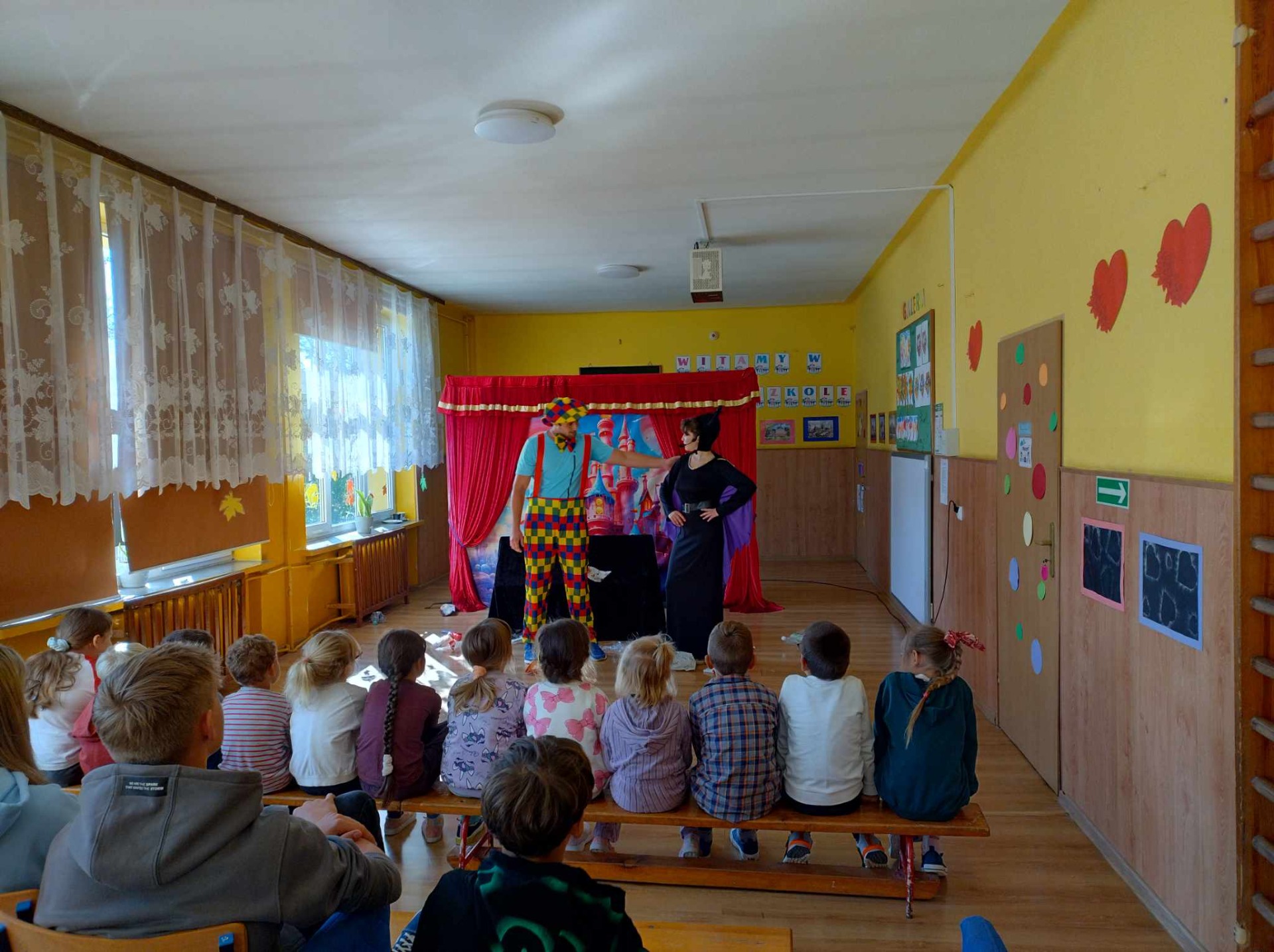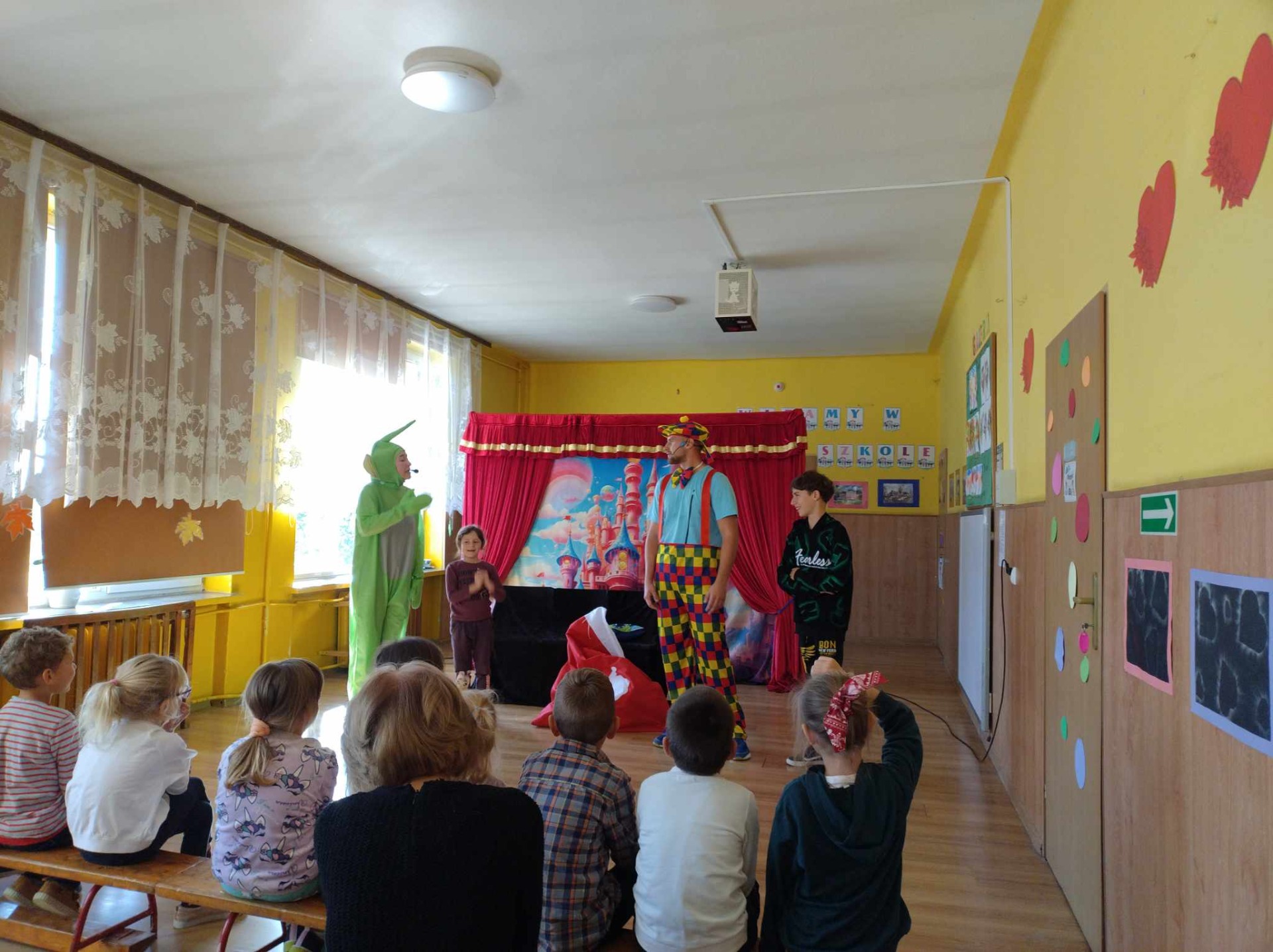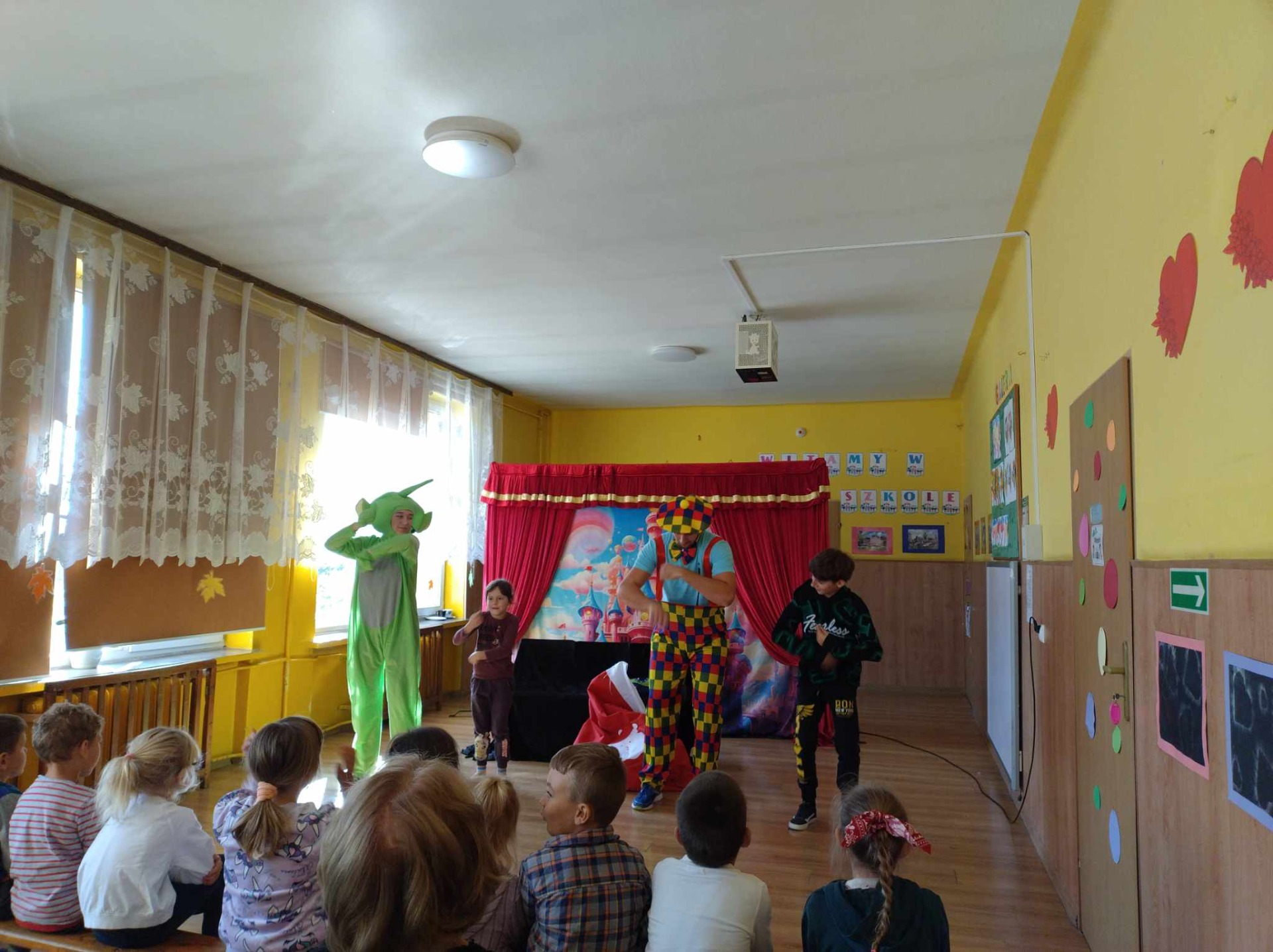 01 października 2024 roku aktorzy zaprezentowali spektakl dla najmłodszych widzów, uczniów klas od zera do trzeciej. Przeprowadzili naszych milusińskich przez problemy związane z segregacją śmieci. Dzieci dowiedziały się, że karygodnym czynem jest wyrzucanie śmieci do lasu, bo zanieczyszczają one naturalne środowisko i uniemożliwiają życie zwierzętom, roślinom, organizmom żywym, niszczą świeże powietrze i przyczyniają się do powolnego uśmiercania naszej planety.
