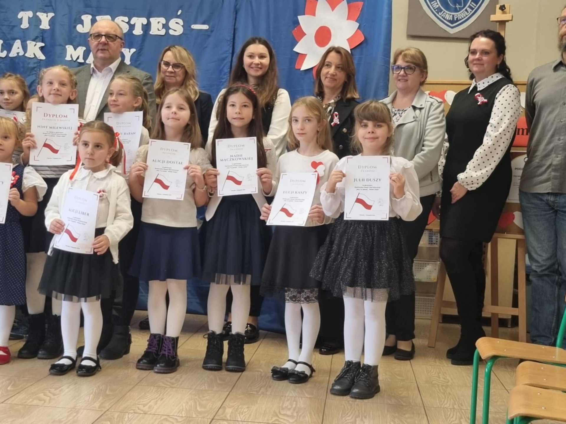7 listopada w SzP nr 2 w Pińczowie odbył się Gminny Konkurs Recytatorski ,, Kto ty jesteś? - Polak mały". Konkurs adresowany był dla dzieci klas 0 -III z miasta i gminy Pińczów. W konkursie wzięło udział 20 uczestników, którzy recytowali poezję o wątkach patriotycznych. Z naszej szkoły w Konkursie Recytatorskim wzięły udział dwie uczennice. Z klasy 0 - Małgosia Dziadek recytując wiersz Władysława Bełzy ,, Modlitwa małej dziewczynki" i z kl. I - Julia Dusza z wierszem ,, Co to jest Polska." Czesława Janczarskiego. Konkurs przebiegał w miłej atmosferze, a wszystkie dzieci z otrzymanymi dyplomami i upominkami, zadowolone, pełne wrażeń wróciły z rodzicami do domu.