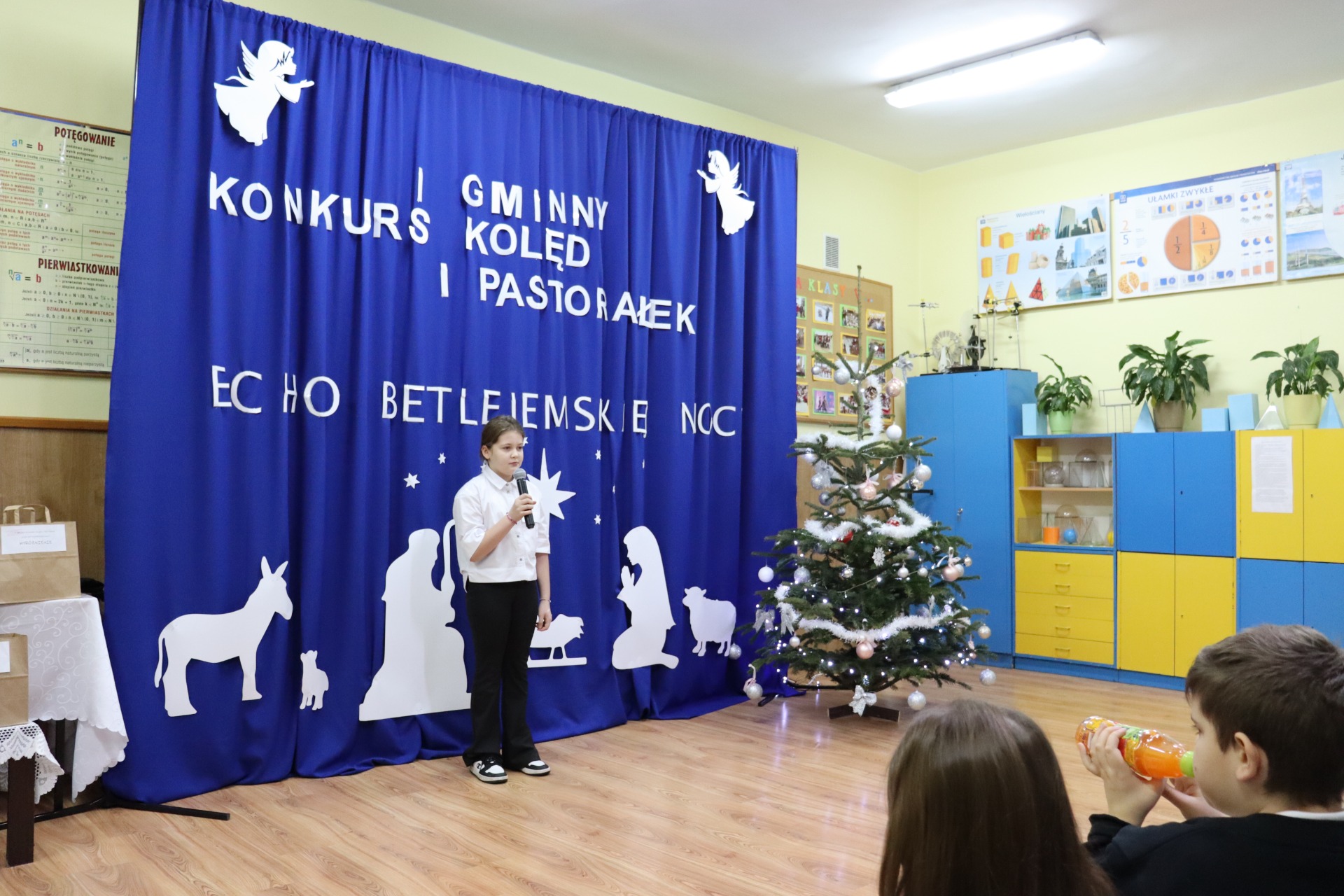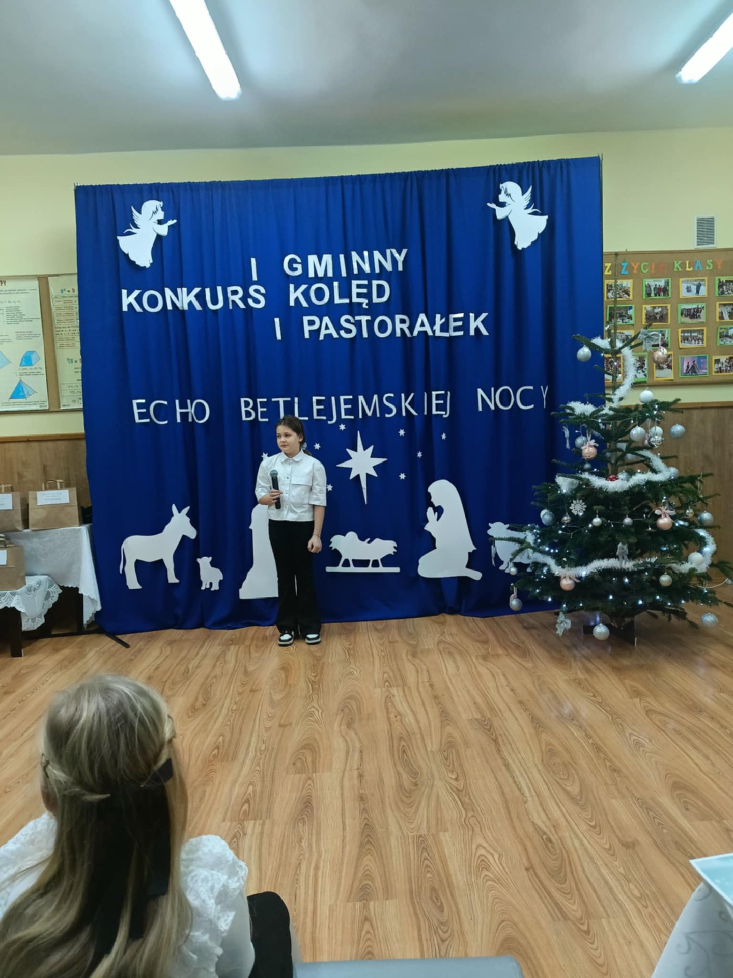 Dnia 9 stycznia 2025r odbył się I Gminny Konkurs Kolęd i Pastorałek dla klas I – III zorganizowany przez Zespół Szkolno – Przedszkolny w Bogucicach. W konkursie uczestniczyło 11 uczniów z sześciu szkół Gminy Pińczów. Dzieci śpiewały po jednej wybranej przez siebie kolędzie lub pastorałce. Naszą szkołę reprezentowała uczennica klasy III – Zuzanna Pruś, która zaśpiewała pastorałkę – Zaśnij Dziecino. Za piękne wykonanie otrzymała wyróżnienie - i wspaniałe nagrody. Dyplom dla szkoły odebrała wychowawczyni klasy III – pani Teresa Zawartka. Dziękujemy organizatorom konkursu.