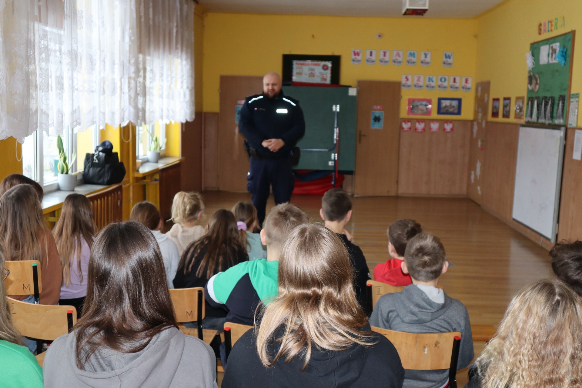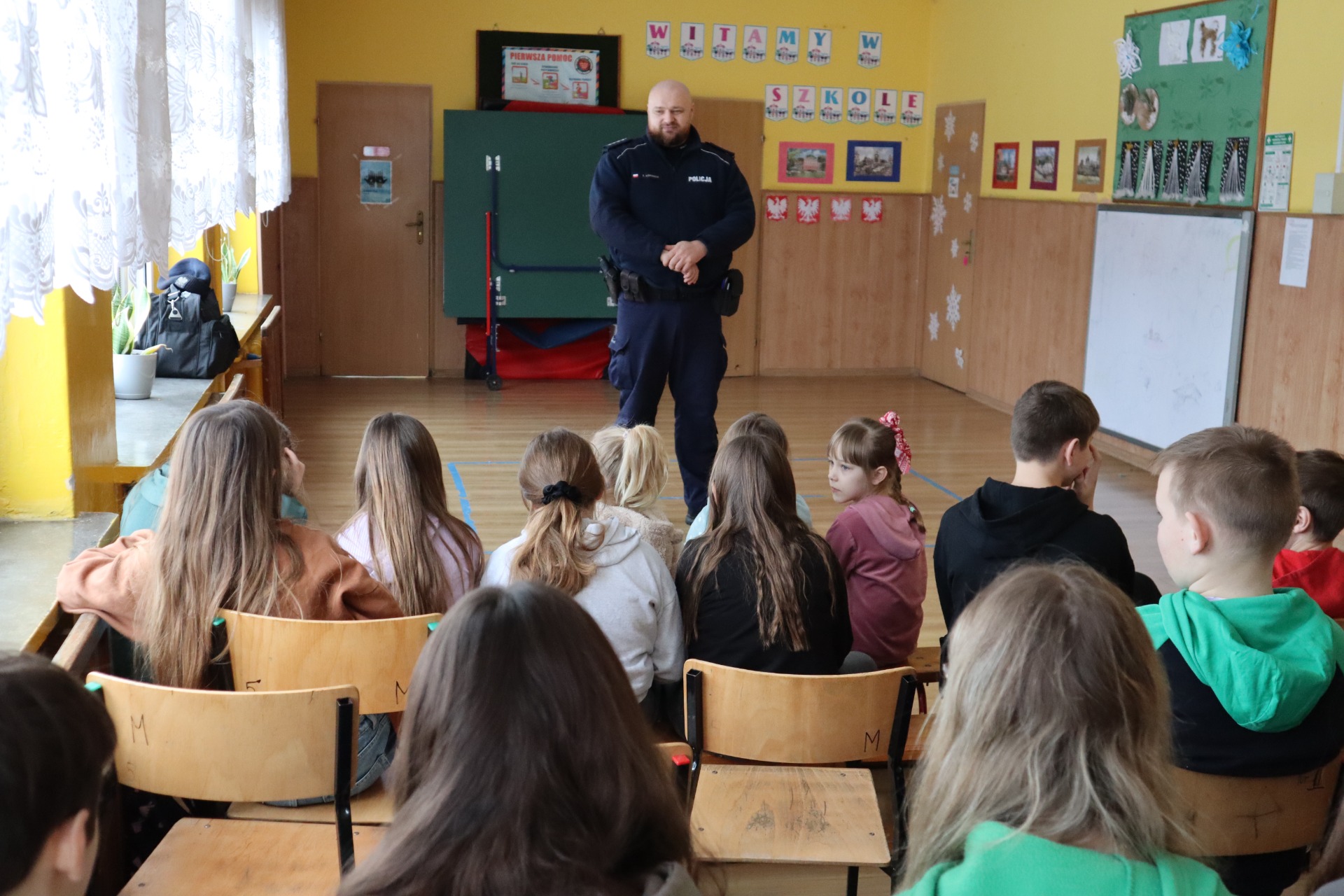 Policjant przeprowadził pogadankę z uczniami, angażował ich do odpowiadania na pytania. Dzieci chętnie mówiły o swoich planach na spędzenie ferii, zabawach, jakie planują w czasie wolnym. Bezpieczeństwo dzieci powinno być priorytetem dla każdego dorosłego.
