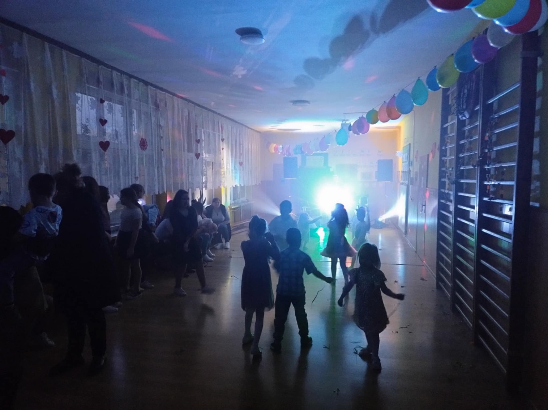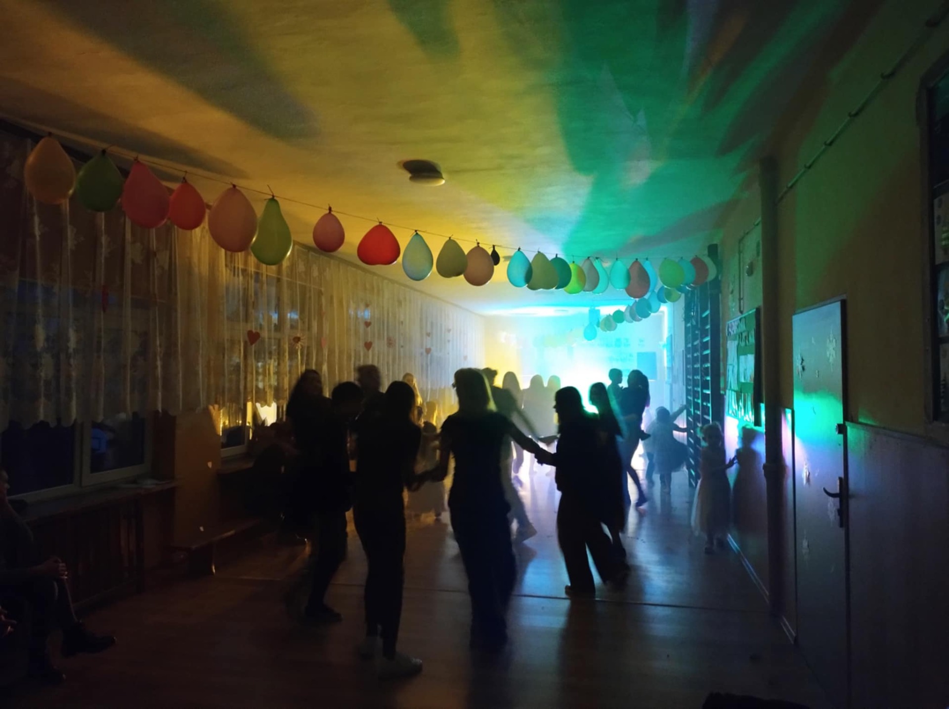 Dzieci ze starszych klas, wspólnie z Samorządem Uczniowskim, zadbały o to, aby górny korytarz szkoły wyglądał odświętnie, przyozdobiły go więc balonami, różnymi elementami choinkowych dekoracji, wprowadzając tym samym zabawowy, jeszcze świąteczno- karnawałowy nastrój.
