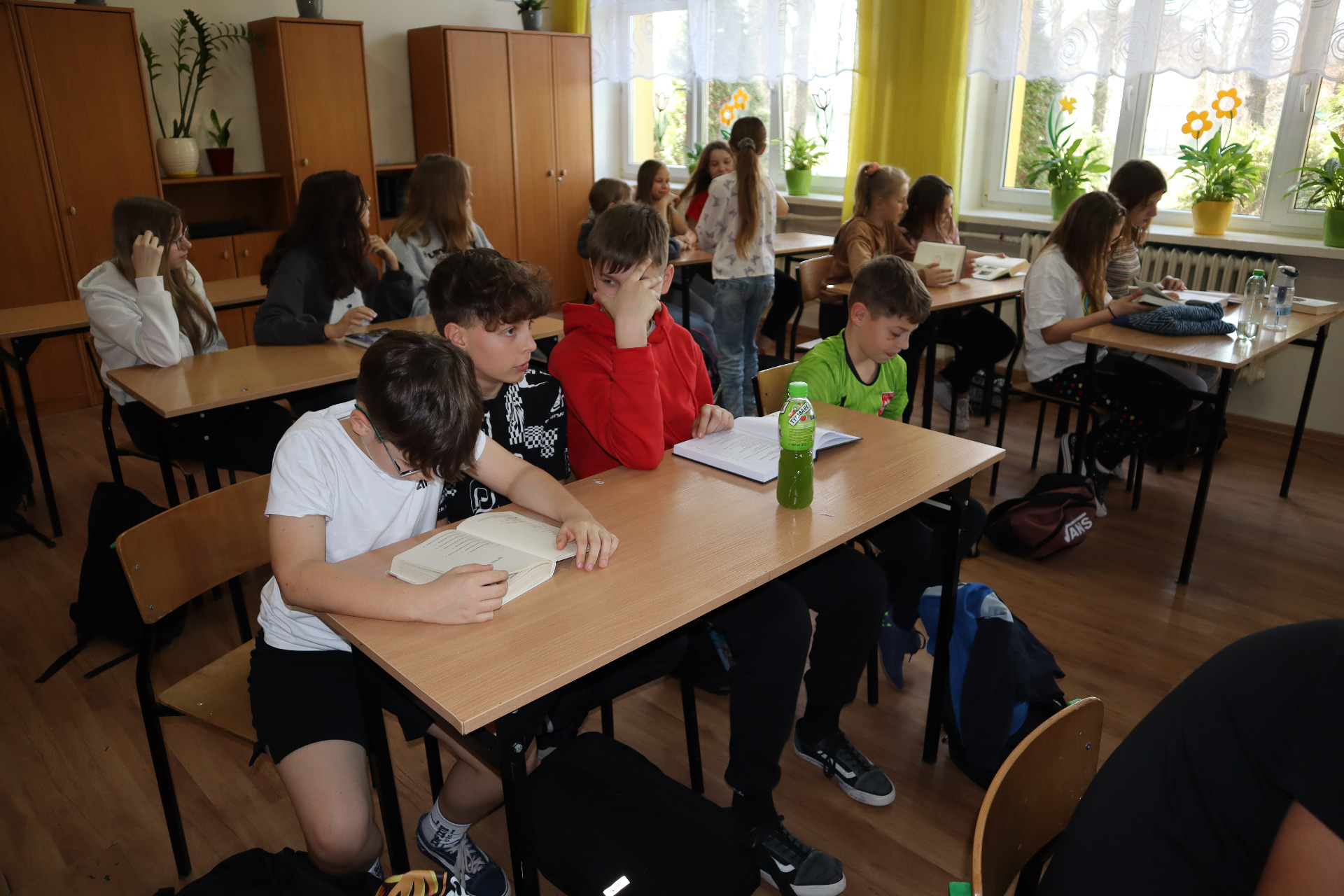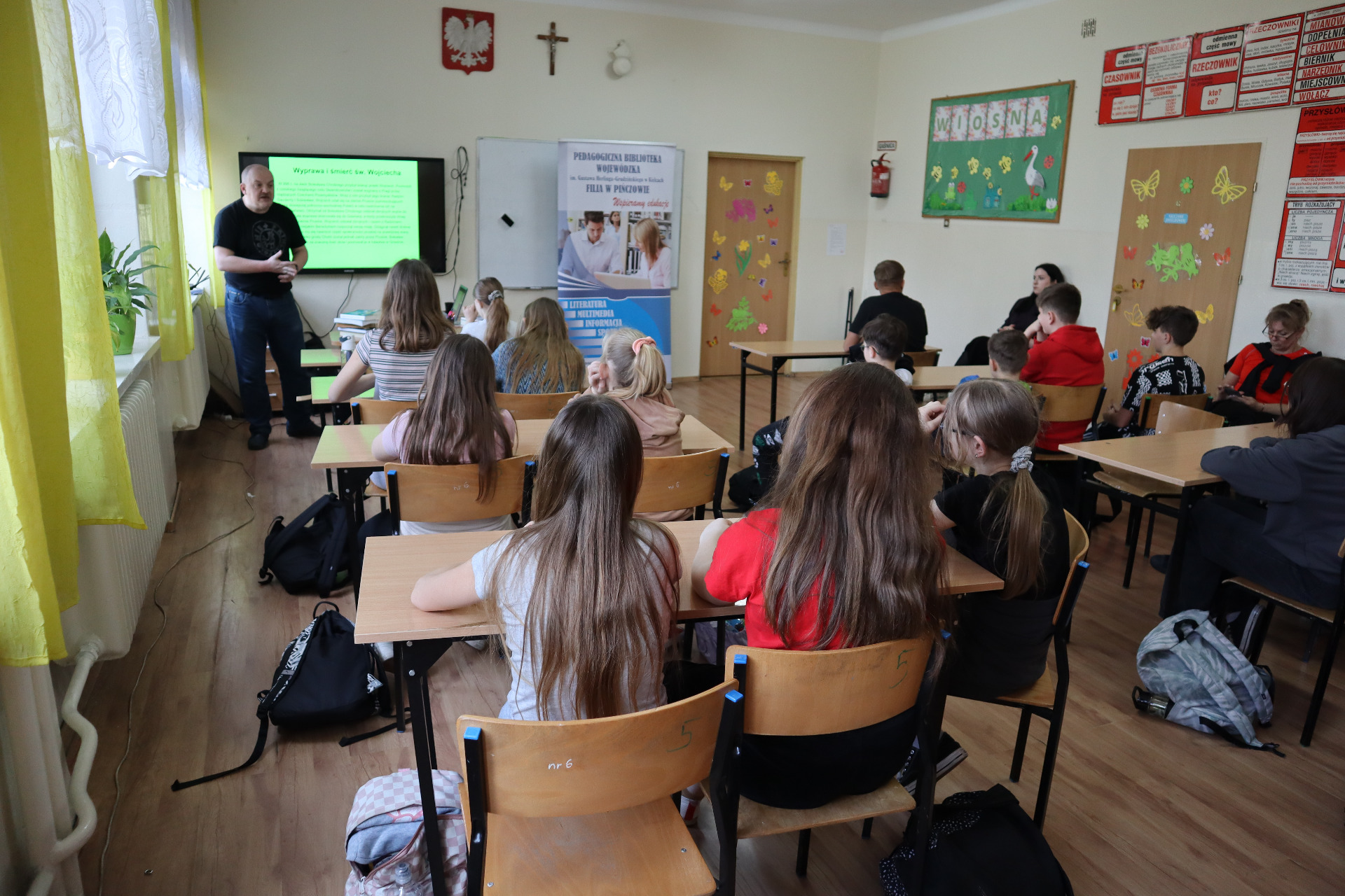 Spotkanie z Panem Robertem Karpińskim było niezwykle ciekawe, dostarczyło uczniom sporą dozę nowych wiadomości o pierwszym koronowanym władcy Polski. Uczniowie mogli również pooglądać różne publikacje na temat panowania Bolesława Chrobrego, które ze sobą przywiózł pracownik Biblioteki Pedagogicznej.