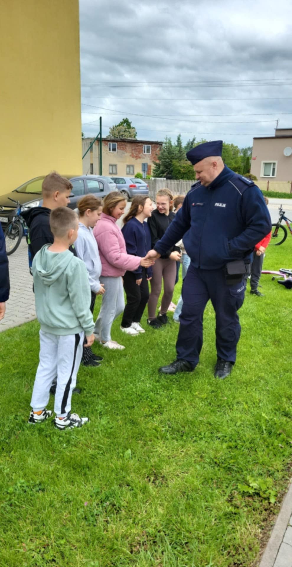 Część praktyczna - Funkcjonariusze Komendy Powiatowej Policji w Pińczowie. Egzamin składał się z dwóch części: pierwsza to część teoretyczna, w której uczniowie musieli się wykazać znajomością przepisów ruchu drogowego, pierwszej pomocy oraz budowy roweru. Druga część, to praktyczna, na której uczniowie wykazali się umiejętnością jazdy po torze przeszkód na rowerze. Wszyscy zdający uczniowie wykazali się dużą wiedzą.