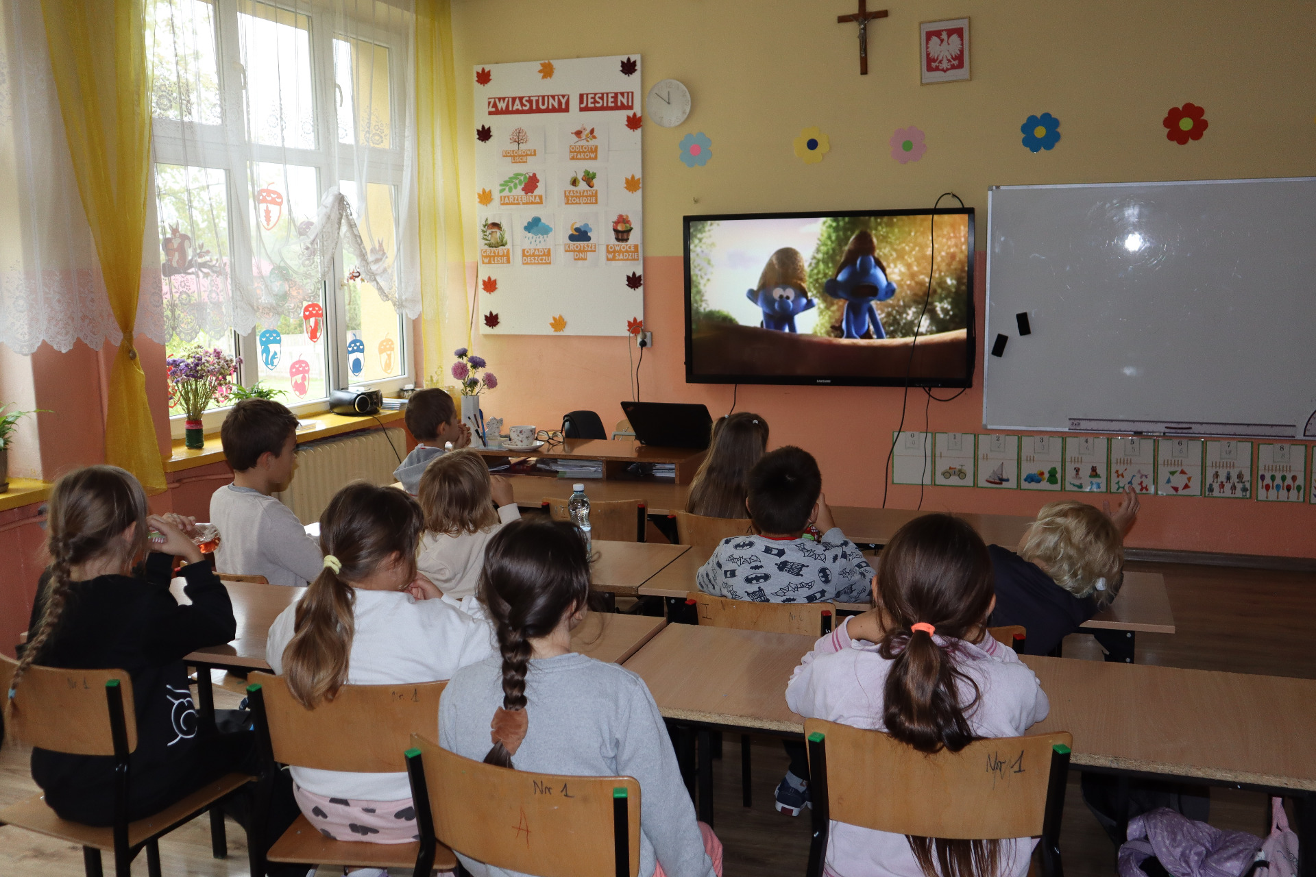 W Szkole Podstawowej w Zagości tego dnia przygotowano dla wszystkich uczniów, a szczególnie dla płci męskiej piknik filmowy. Uczniowie zostali podzieleni na dwie grupy: młodsze dzieci, klasy I i II obejrzały film „ Smerfy”, a starsze dzieci , klasy IV do VIII- film „Kraina snów”. W trakcie seansów, niezawodni jak zwykle , rodzice dostarczyli z ulubionej przez uczniów pizzerii pizzę. To było bardzo przyjemne popołudnie, wszyscy miło spędzili czas siedząc przed ekranem tablicy interaktywnej na wygodnych, szkolnych kanapach.