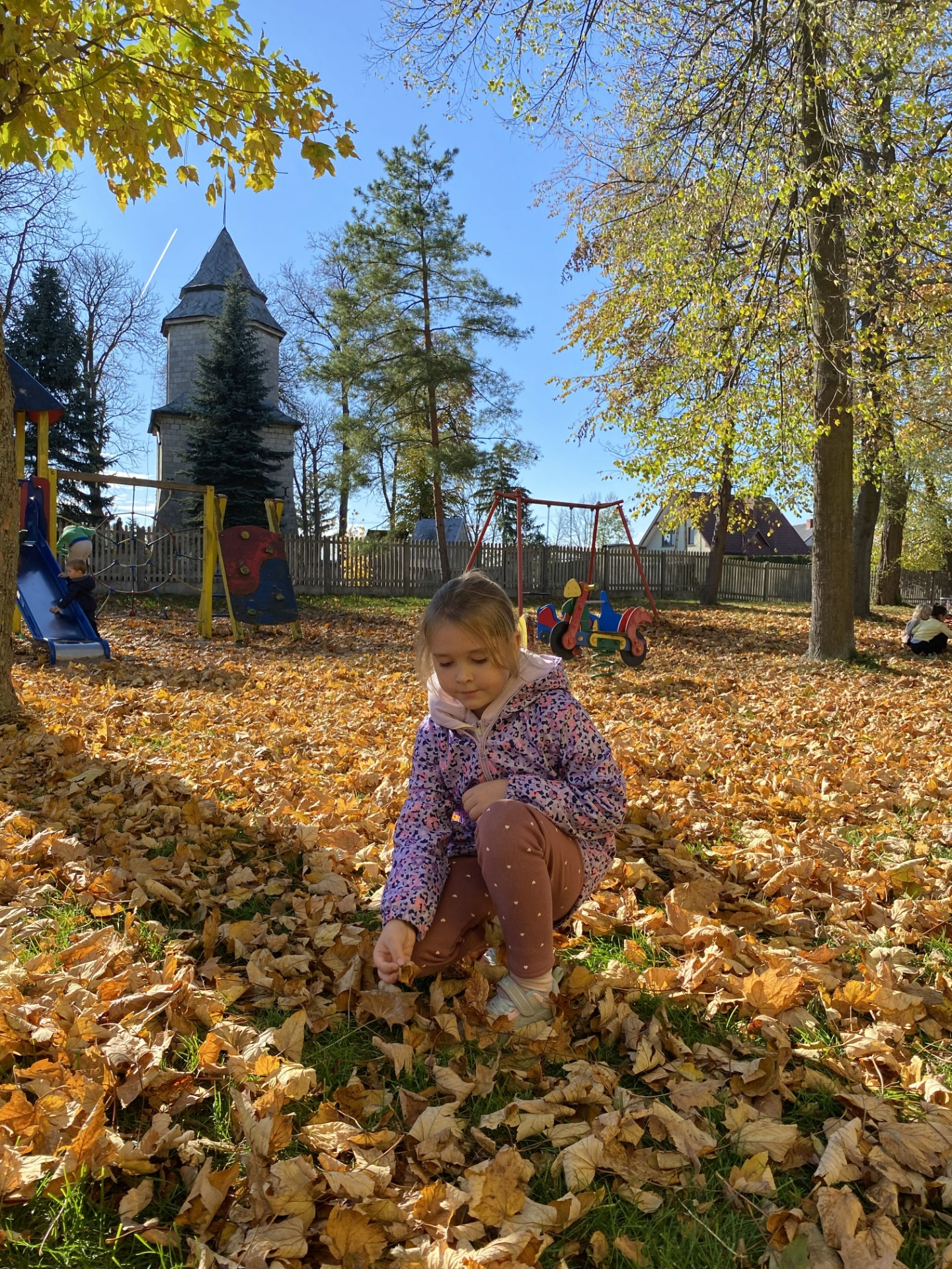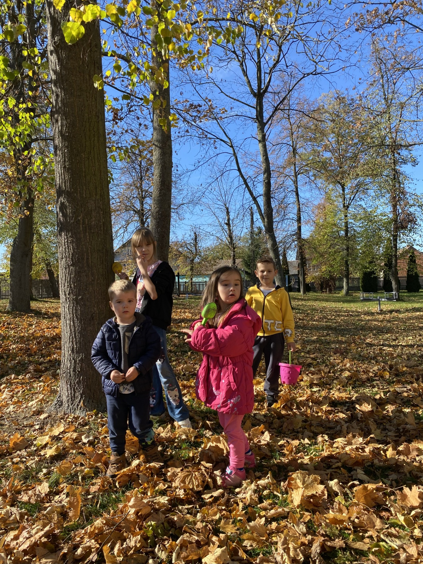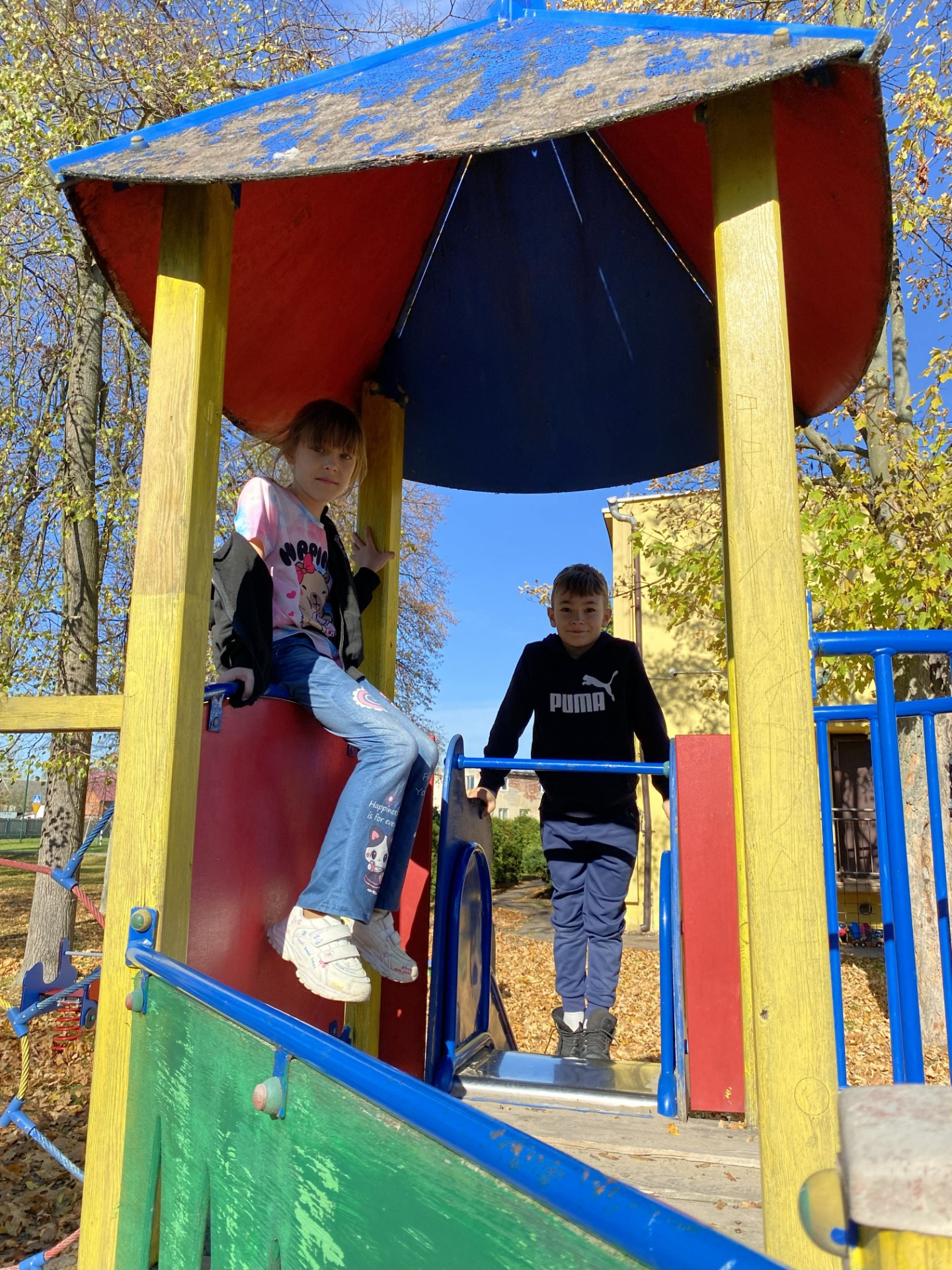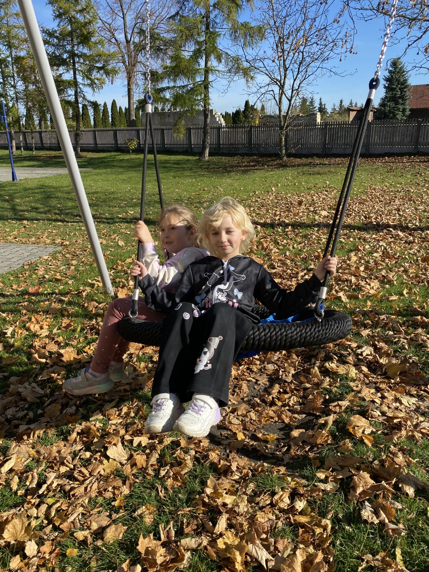 Uczniowie klas I–II wspaniale spędzili czas na szkolnym placu zabaw podczas zajęć świetlicowych. W piękny, słoneczny, jesienny dzień bawili się wśród kolorowych liści, korzystając z huśtawek, zjeżdżalni i wspólnych zabaw na świeżym powietrzu. Podczas zabawy integrowali się także z przedszkolakami, wspólnie tworząc radosną, pełną śmiechu atmosferę. To był naprawdę udany, jesienny dzień pełen słońca i uśmiechów!