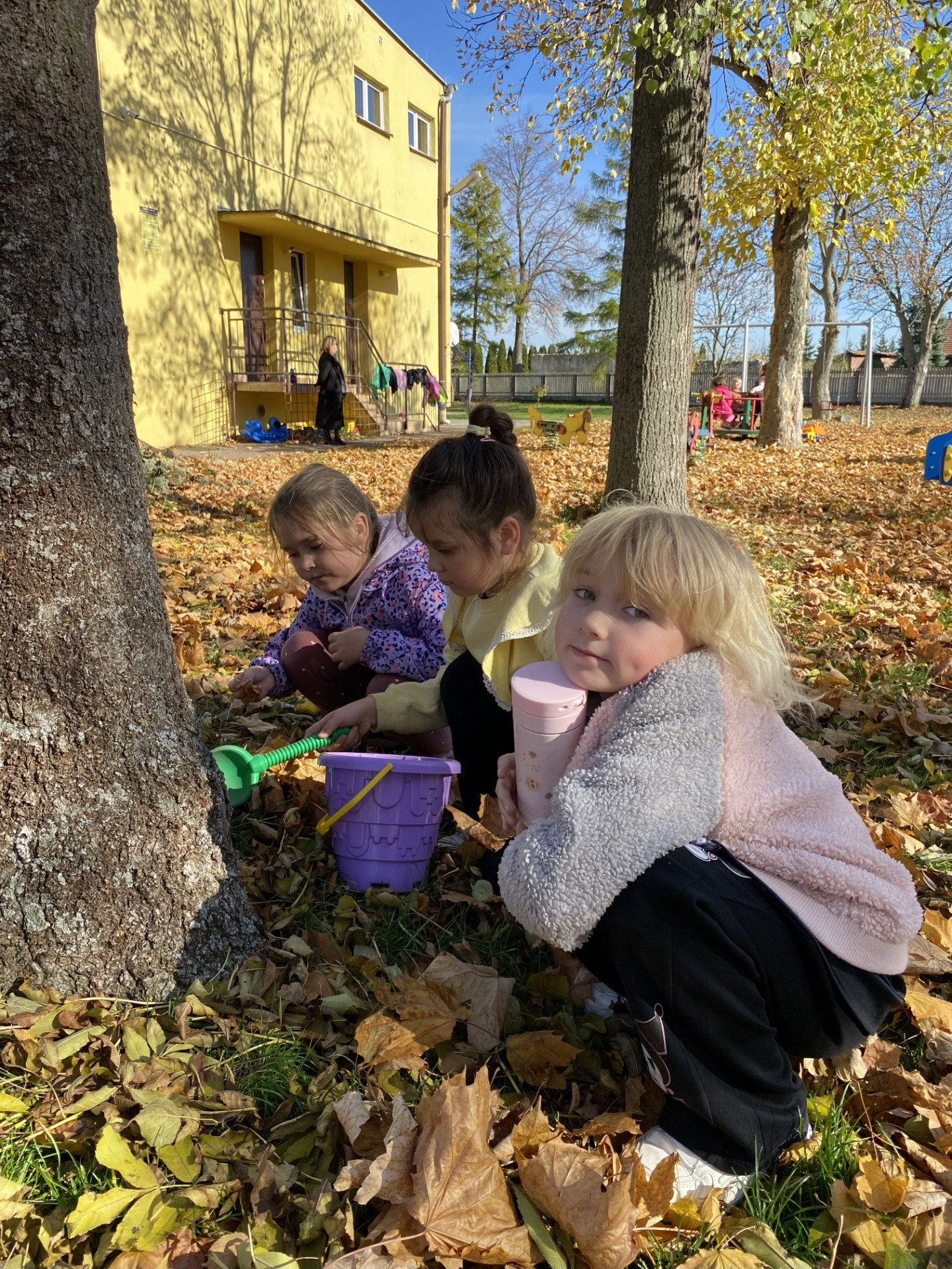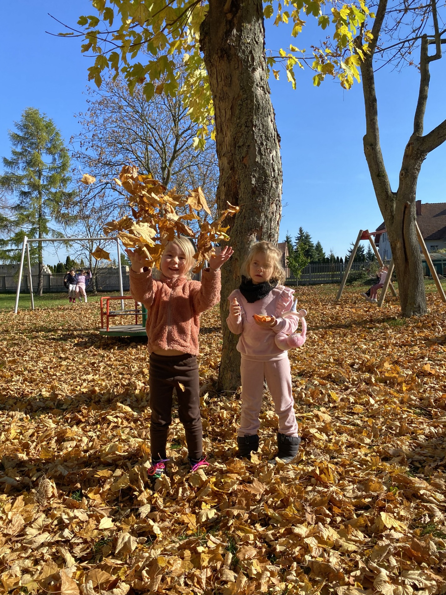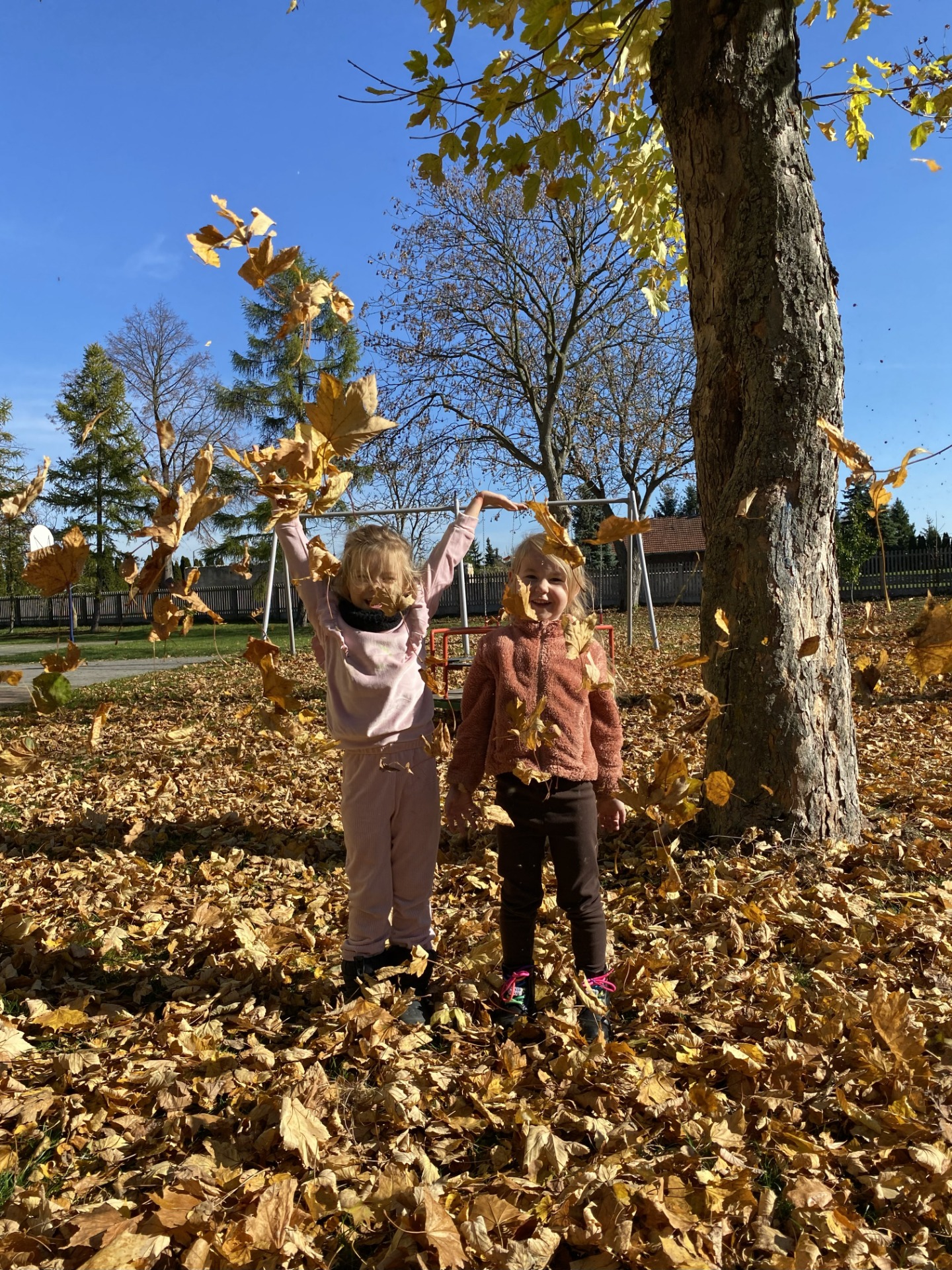 Jesienne, pełne słońca i kolorowych liści zabawy na placu szkolnym