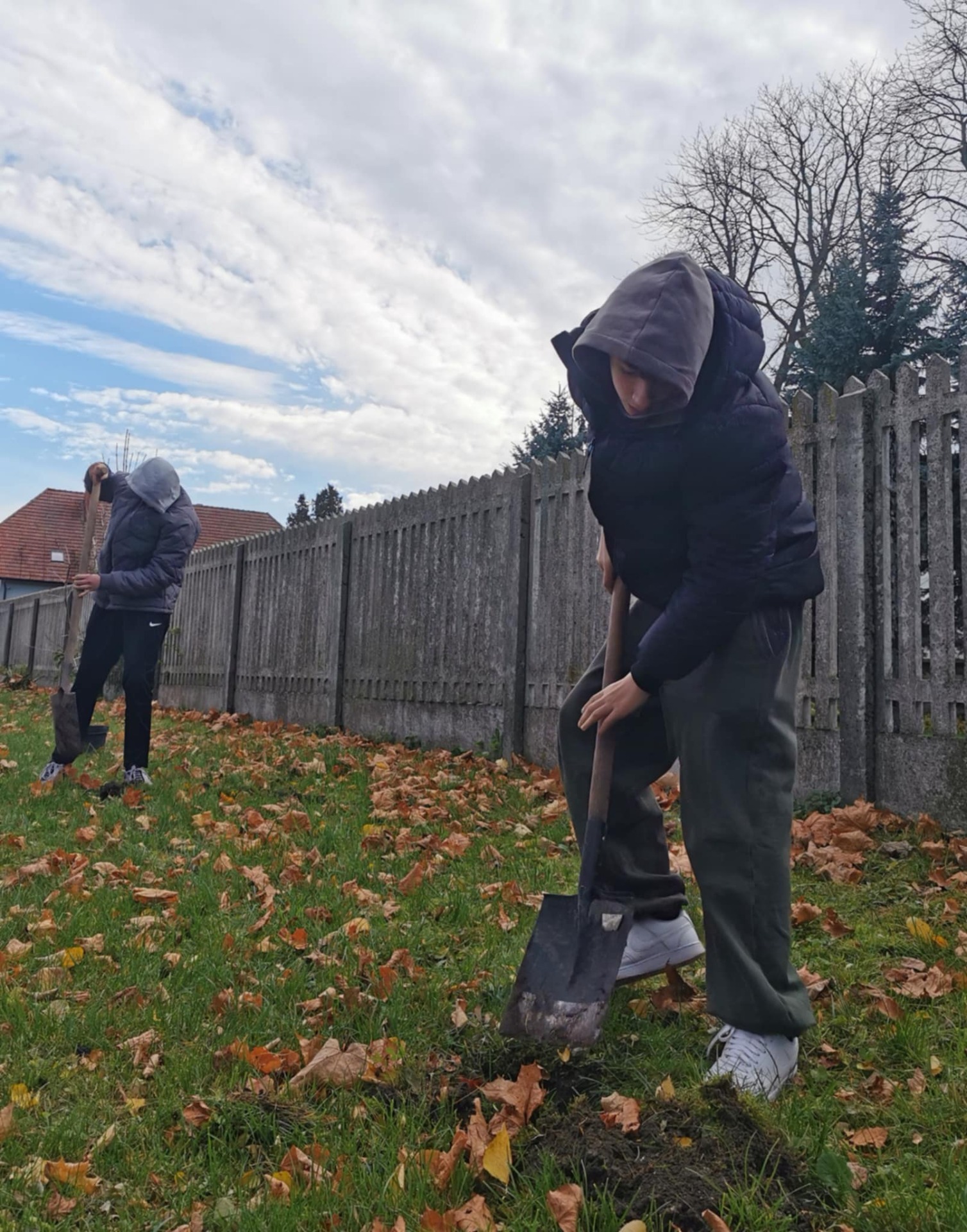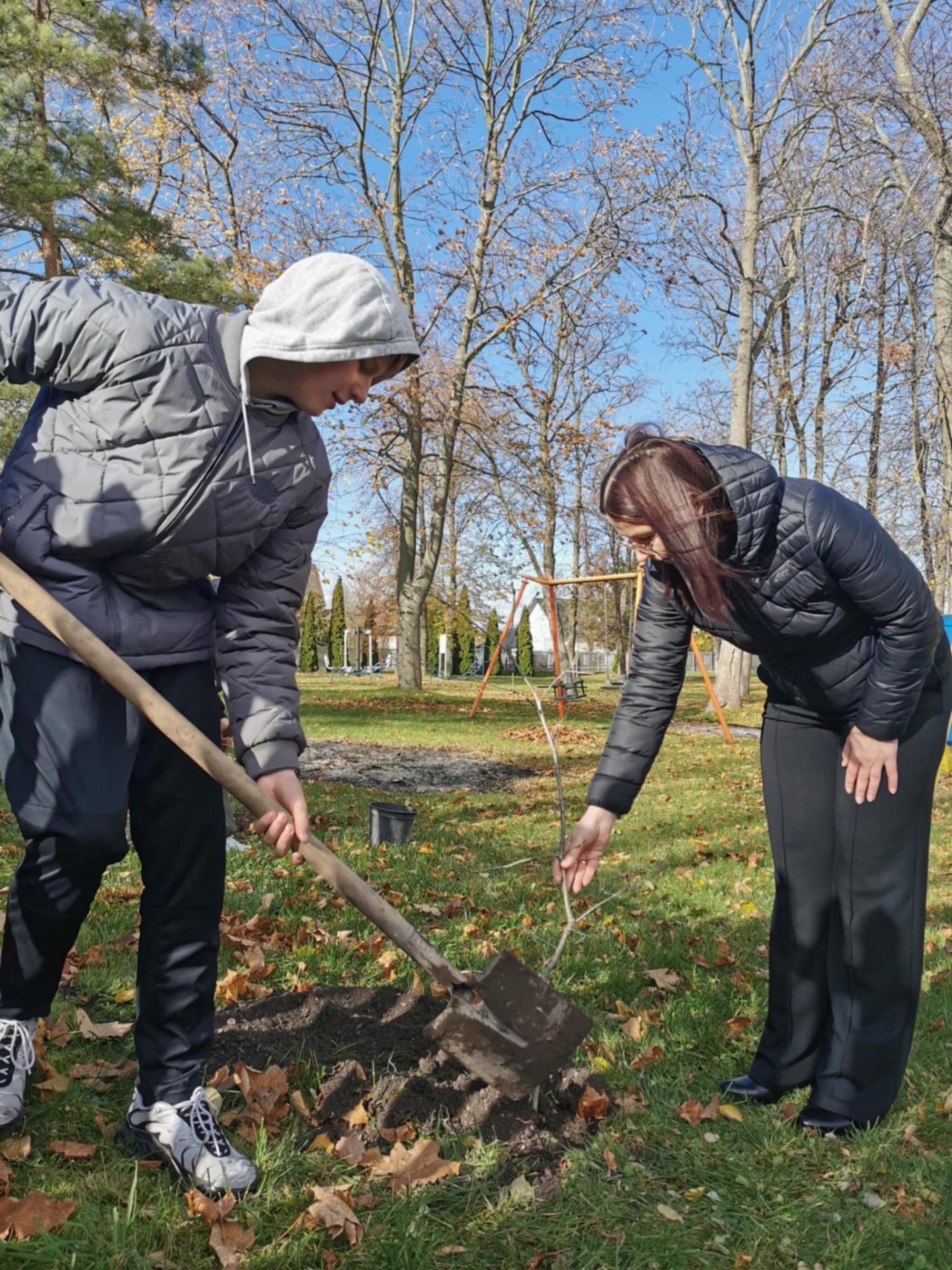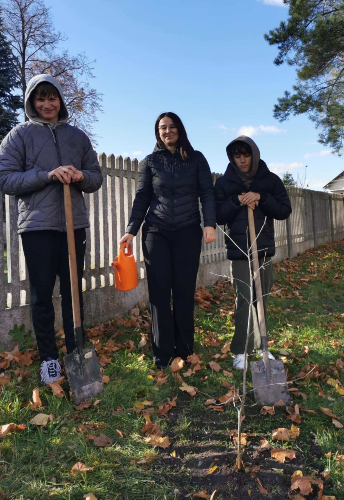 W naszej szkole od lat pielęgnowana jest piękna tradycja – uczniowie klasy VIII sadzą drzewka w parku otaczającym szkołę, w ramach obchodów Dnia Drzewa.To symboliczny gest, który przypomina, jak ważne jest dbanie o przyrodę i środowisko, w którym żyjemy. Każde posadzone drzewko to krok w stronę czystszego powietrza i zdrowszej planety. W tym roku ósmoklasiści, wspólnie z wychowawczynią Martą Gajos oraz panią psycholog Aleksandrą Wilk, posadzili dwa nowe drzewka. Wspólna praca, uśmiechy i zaangażowanie uczniów sprawiły, że to wydarzenie stało się nie tylko lekcją ekologii, ale też współpracy i odpowiedzialności. Drzewa dają nam tlen, oczyszczają powietrze, dają cień i są domem dla wielu zwierząt.