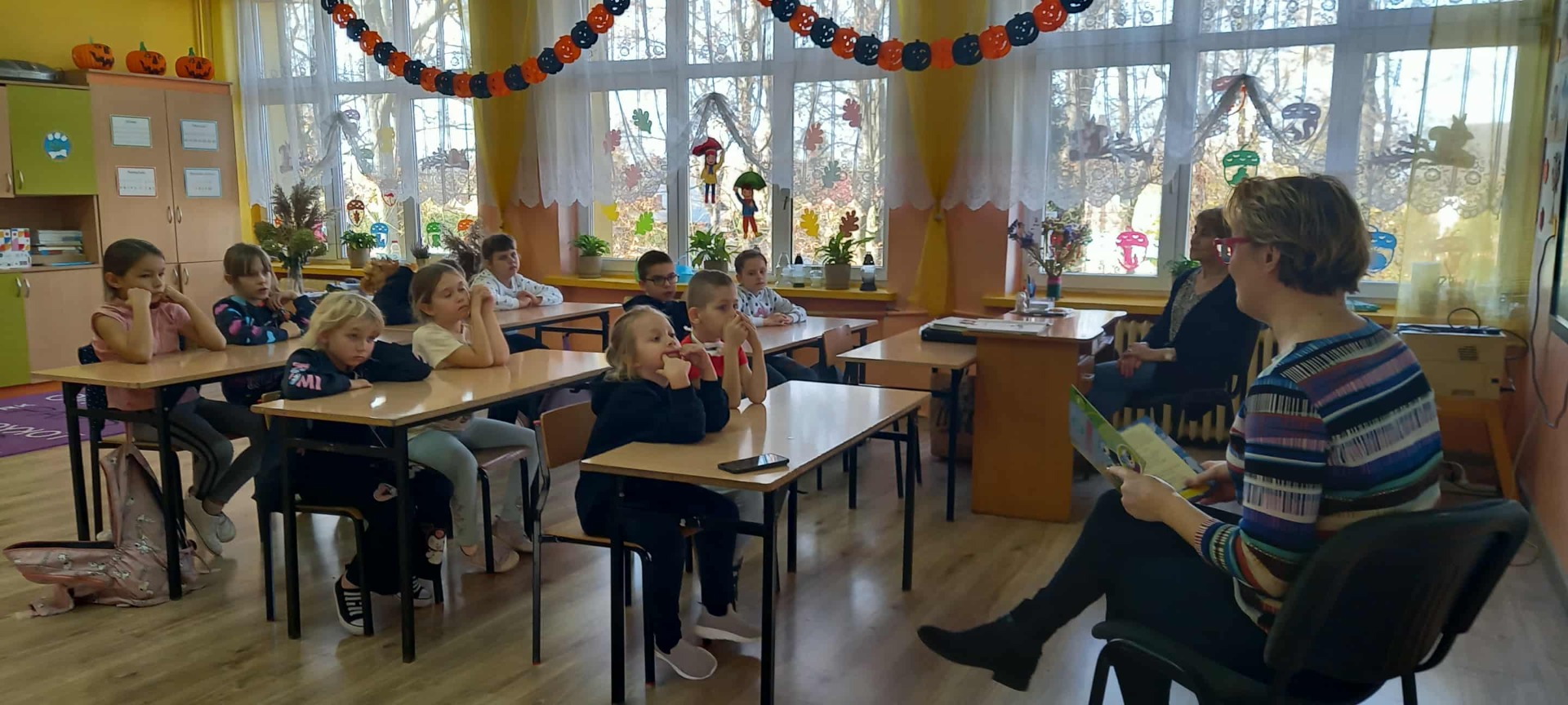 Spotkanie z pracownikiem Miejskiej i Gminnej Biblioteki w Pińczowie miało miejsce dnia 29.11.2025 roku w Szkole Podstawowej i Przedszkolu w Zagości i dotyczyło przede wszystkim obyczajów, i rytuałów związanych ze Świętem Zmarłych oraz Halloween. Spotkanie niezwykle ciekawe, gdyż prowadząca je Pani Joanna Strączek- Dziabała, czytała uczniom fragmenty książki pod takim właśnie tytułem: „Czy ten smutek kiedyś minie?”, z której to lektury można było się dowiedzieć, jak radzić sobie z żałobą po stracie kogoś bliskiego. Każdy człowiek ma prawo do opłakiwania osoby, którą stracił, na swój własny sposób. Uczucia żalu nie można wymusić, czasami smutek dociera do nas później….., a tak naprawdę osobę, która była dla nas ważna nosimy w sercu, z żalem i żałobą nie obnosimy się wśród ludzi.