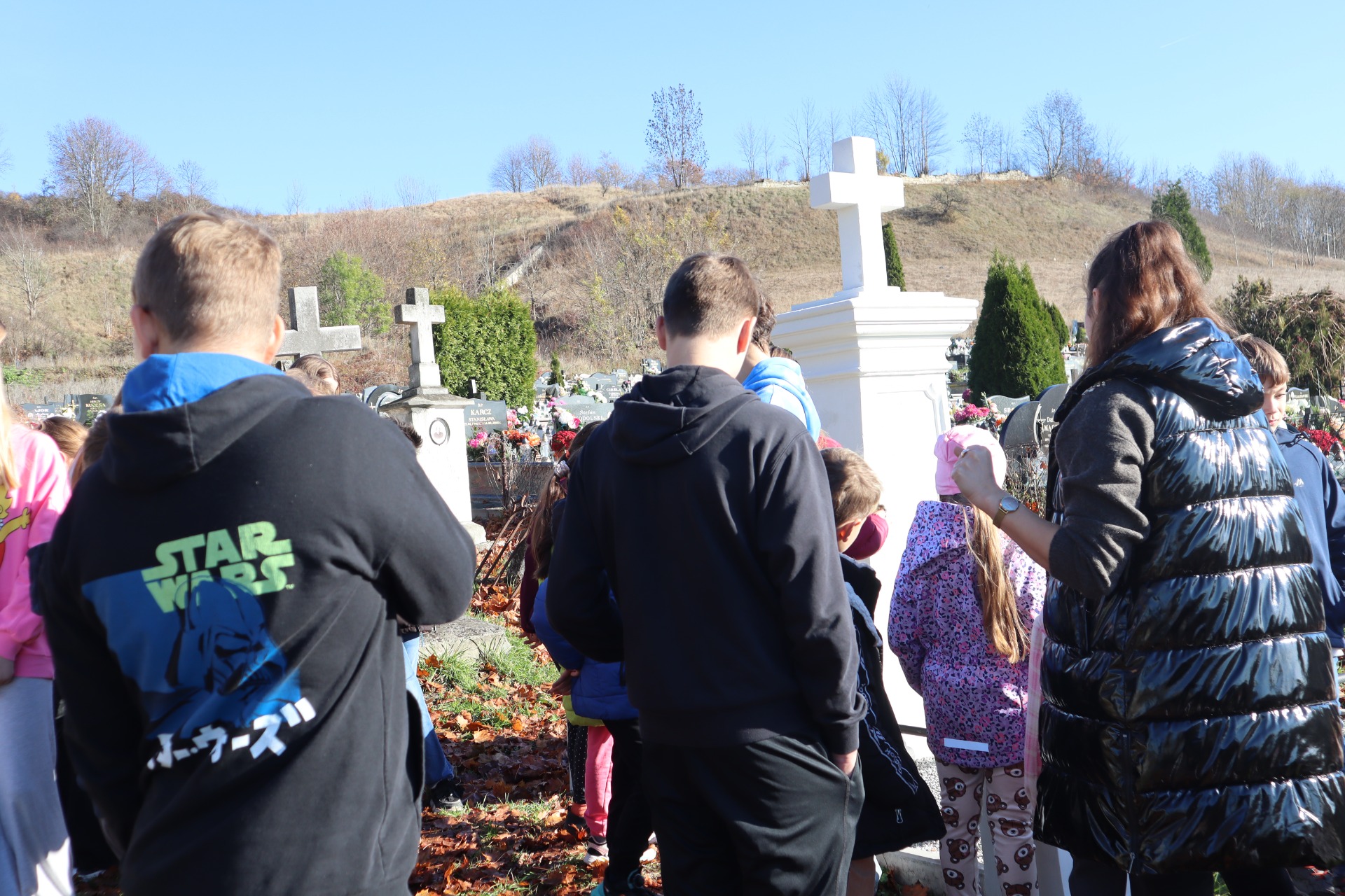 W dniu 4 listopada 2025 roku uczniowie klas od I do VIII wzięli udział w warsztatach niepodległościowych organizowanych przez Muzeum Regionalne w Pińczowie. Uczniowie udali się na cmentarz z okresu I wojny światowej, aby oddać hołd poległym żołnierzom. W ciszy i zadumie zapalili znicz na żołnierskich mogiłach, wyrażając w ten sposób pamięć, szacunek i wdzięczność wobec tych, którzy oddali życie za wolność Ojczyzny. Był to moment pełen refleksji nad historią i losem ludzi, dzięki którym możemy dziś cieszyć się pokojem.