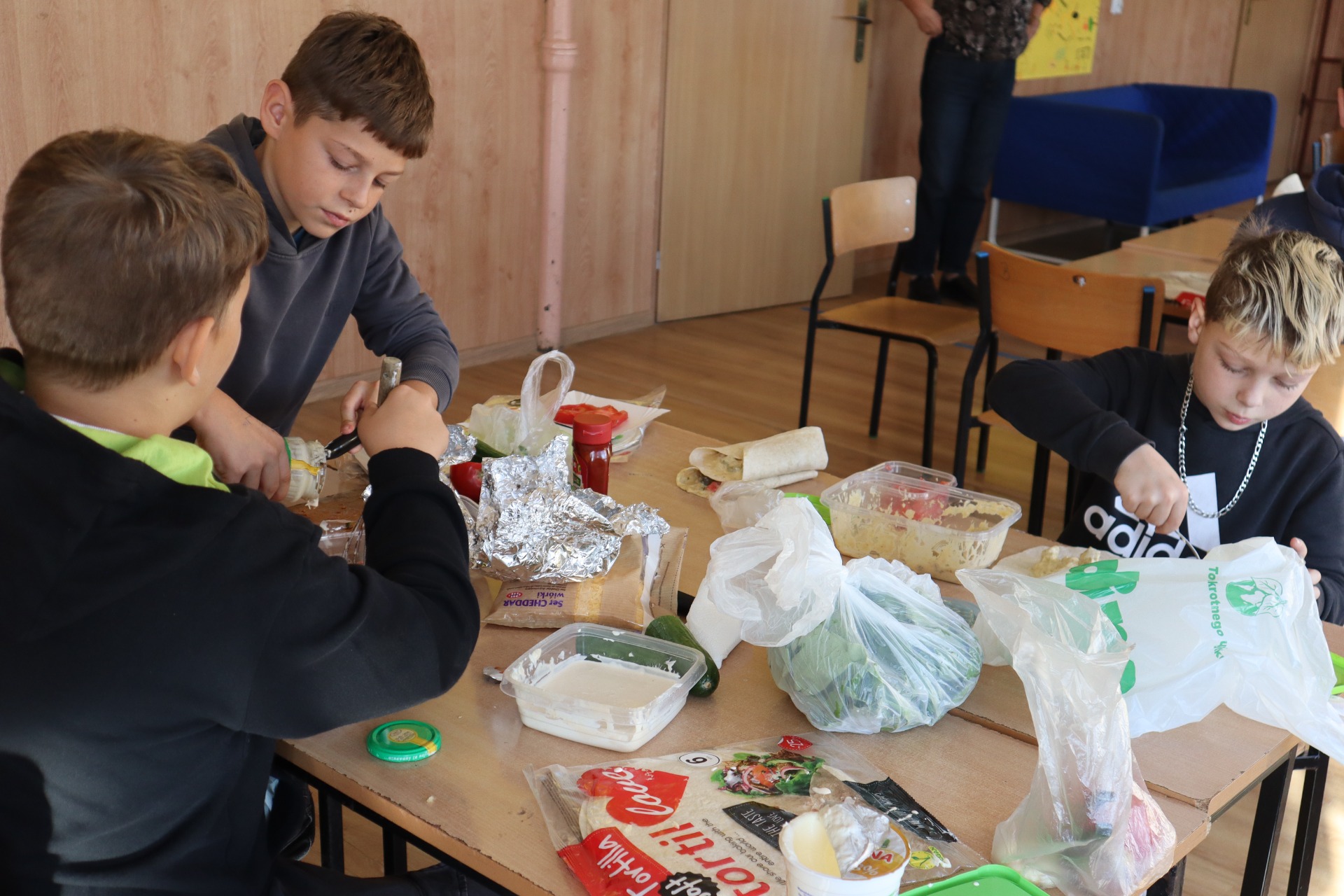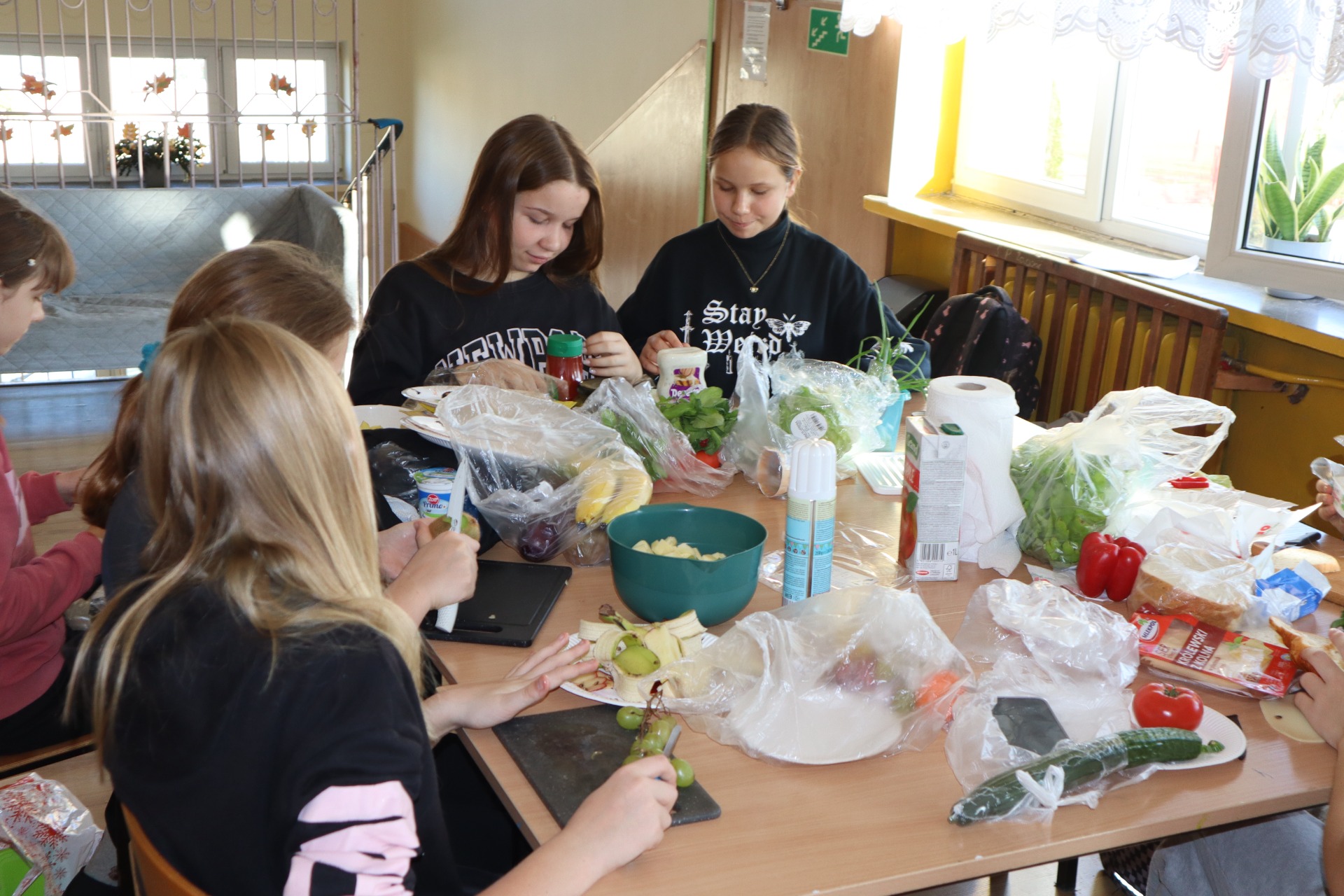 Zdrowe jedzenie nie musi być nudne, toteż uczniowie klas I-VIII wspólnie dzisiaj przygotowywali na szkolnym korytarzu szkoły, który dzisiaj zamienił się w ekskluzywną stołówkę, kolorowe sałatki owocowe i warzywne, a także zdrowe kanapki. Dzieci rywalizowały ze sobą w konkursie na „Najbardziej kreatywną kanapkę”. Zwycięzcą okazały się dzieci z kl I, drugie miejsce przypadło kl II, a trzecie klasie VI. Pozostałe klasy otrzymały dyplomy za udział .Komisja przy ocenie kanapek brała pod uwagę walory zdrowotne, smakowe, to z jakich produktów zostały kanapki wykonane oraz ich wygląd Była to nie tylko świetna zabawa, ale i nauka zdrowych nawyków a o to przecież chodzi, w myśl zasady: „czym skorupka za młodu nasiąknie….”