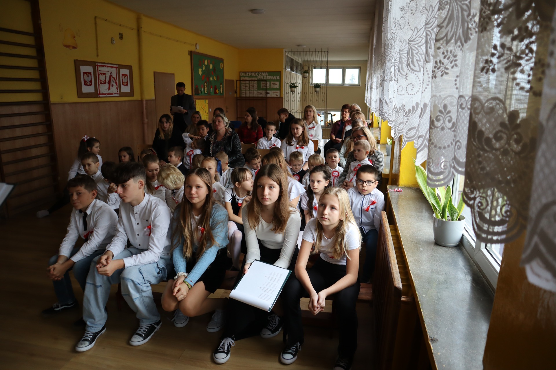 W dniu 12.11.2025 w naszej szkole odbyła się uroczysta akademia upamiętniająca 107 rocznicę odzyskania prze Polskę Niepodległości. Część artystyczną przedstawiły przedszkolaki wykonując utwór „Przybyli ułani pod okienko” oraz uczniowie klas V–VIII. W pięknym montażu słowno-muzycznym zaprezentowano rys historyczny trudnej drogi Polaków do niepodległości. Uczniowie z wielkim zaangażowaniem przypomnieli najważniejsze wydarzenia z dziejów naszego kraju, ukazując bohaterstwo, odwagę i determinację tych, którzy przez 123 lata walczyli o wolną Polskę. Powagę i uroczysty charakter akademii podkreśliły patriotyczne wiersze oraz piosenki w wykonaniu Zuzanny Prażuch. Uroczystość była nie tylko lekcją historii, ale również żywą lekcją patriotyzmu, uczącą szacunku do narodowych symboli i wdzięczności wobec tych, którzy poświęcili swoje życie za wolność Polski.